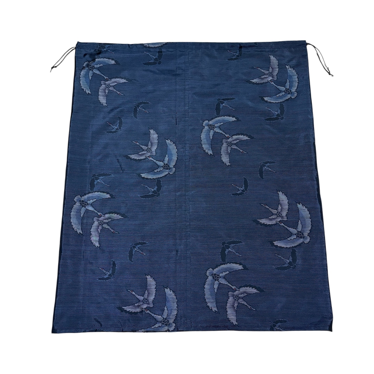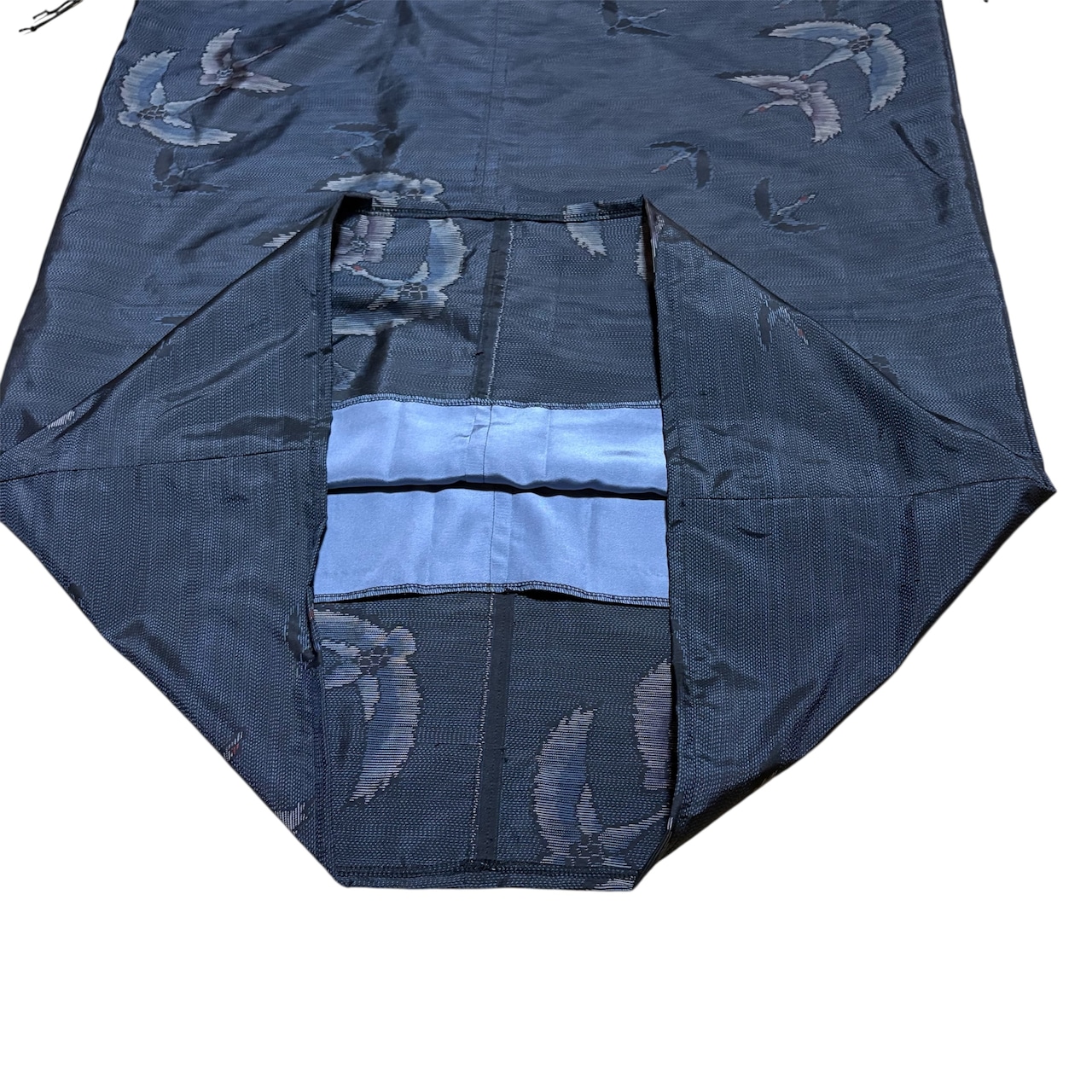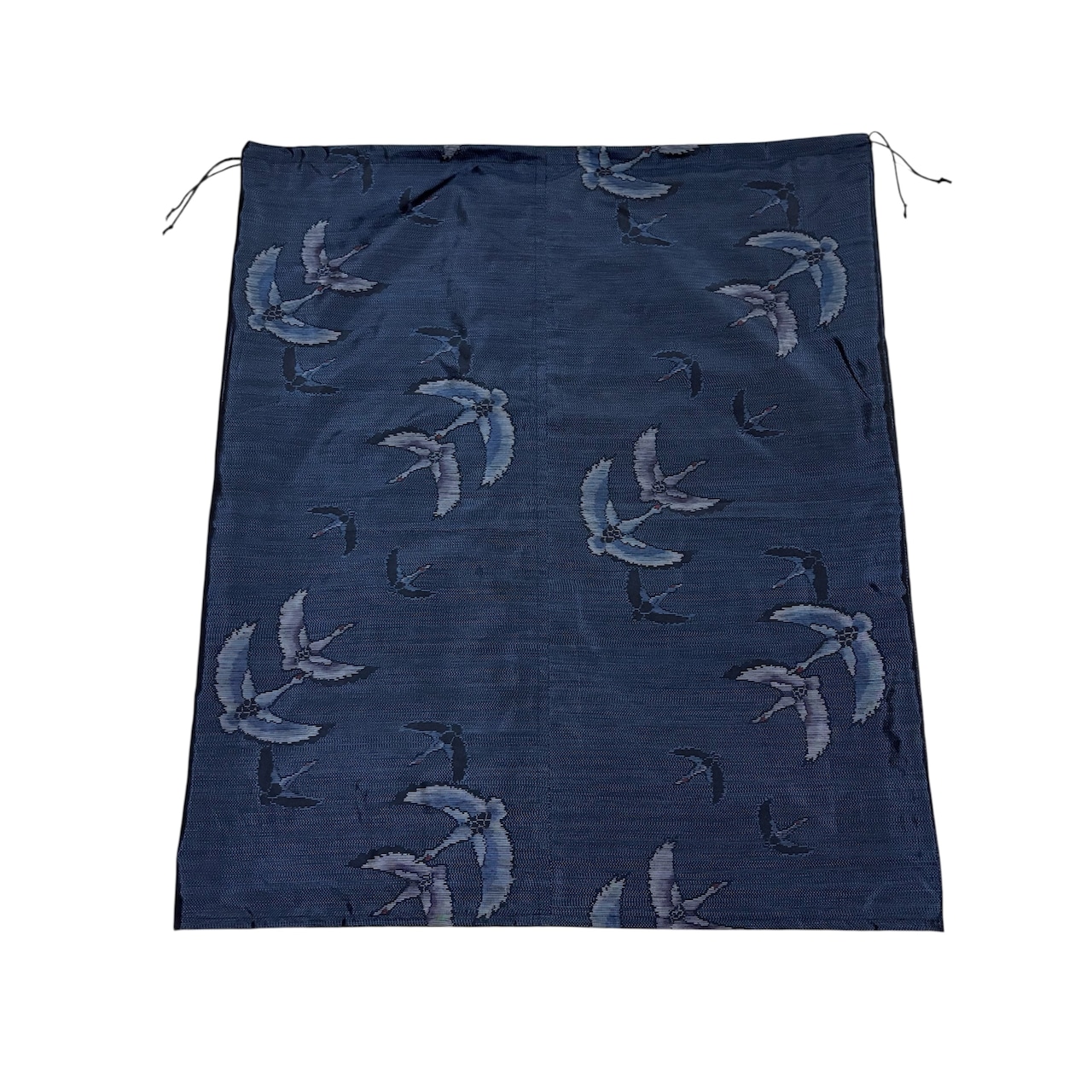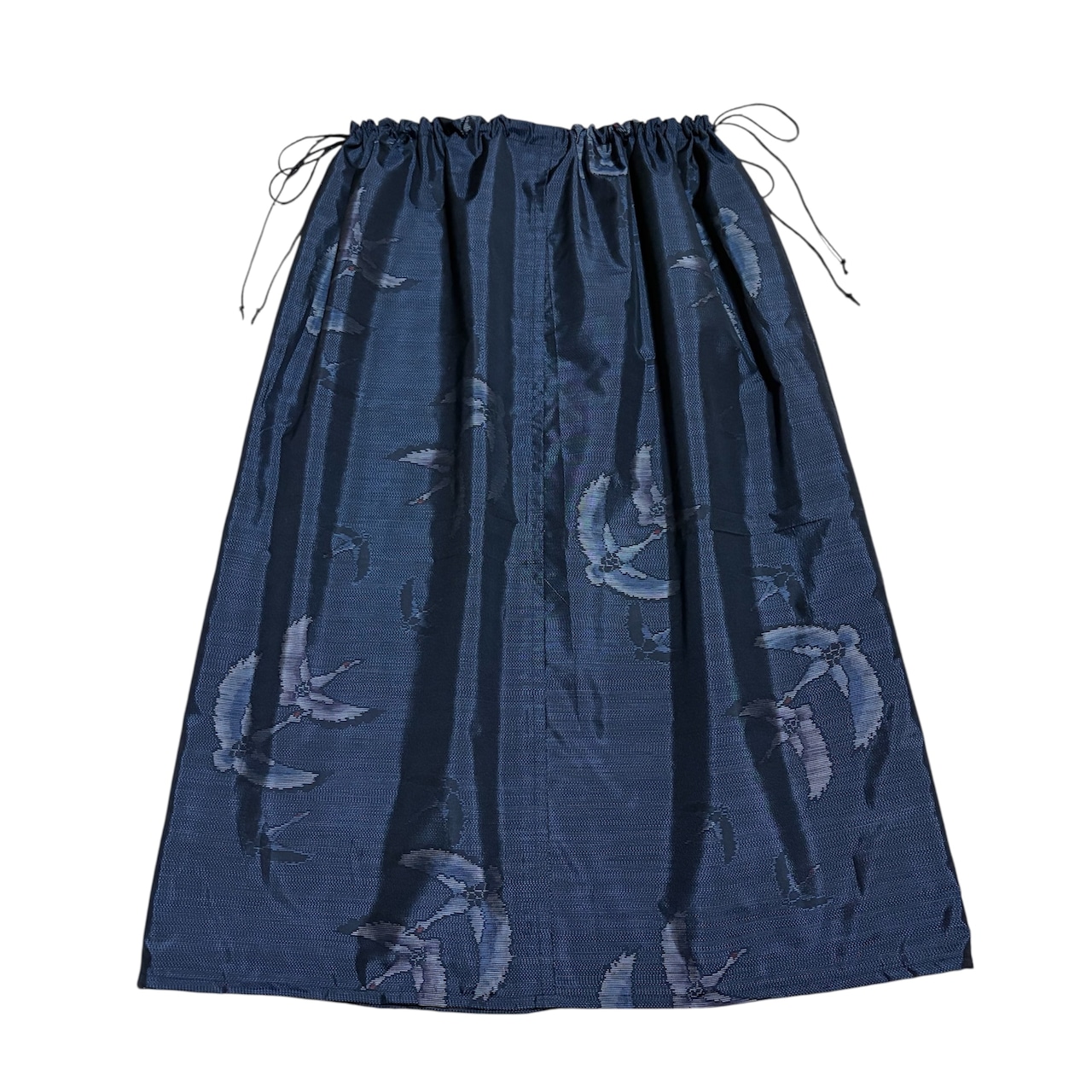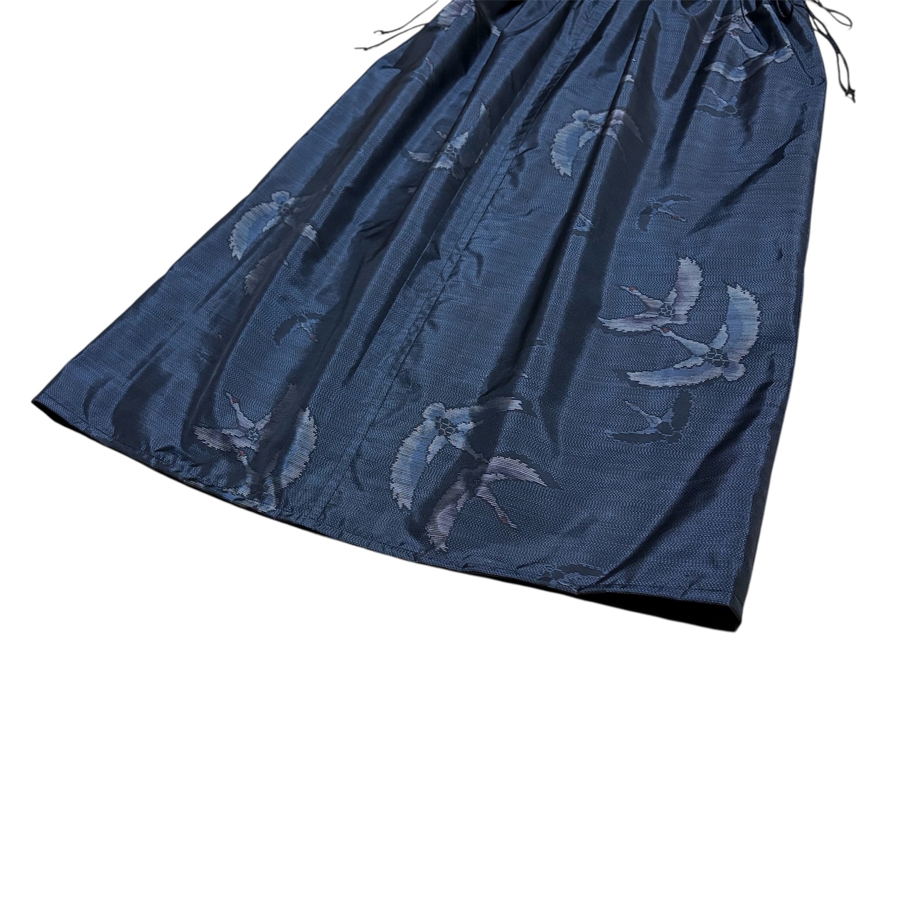 大島紬 着物リメイク 巾着スカート 飛鶴文様 ロング りぼんひも 裏地あり