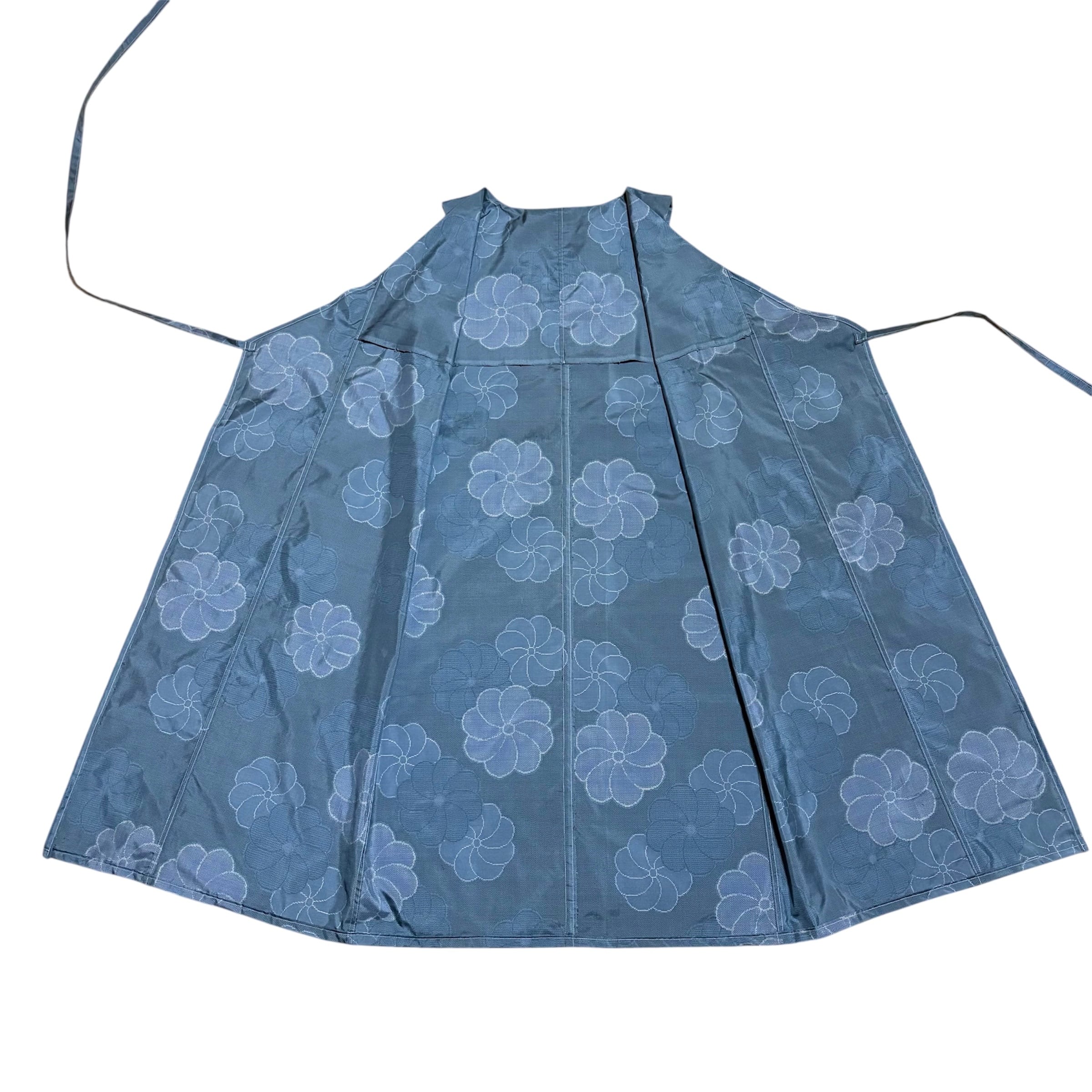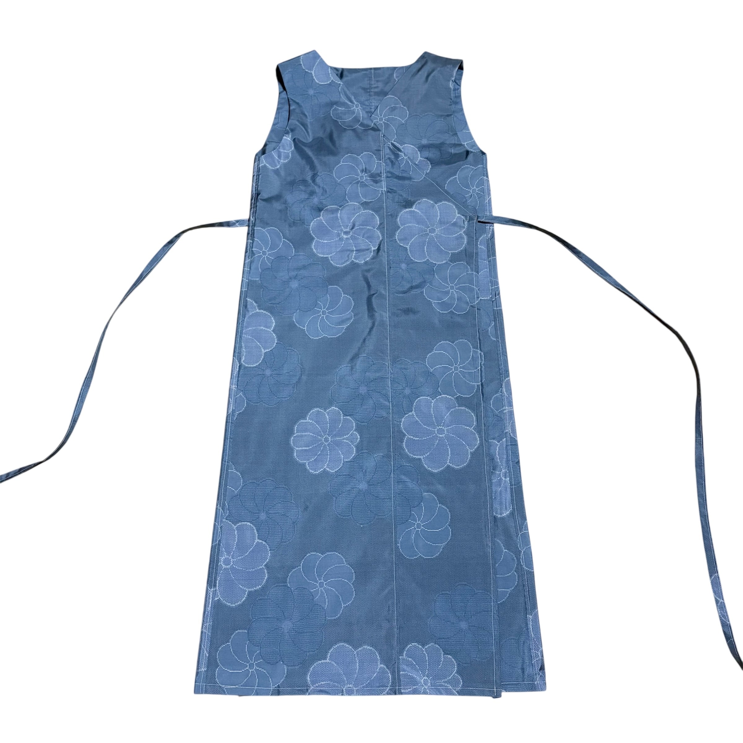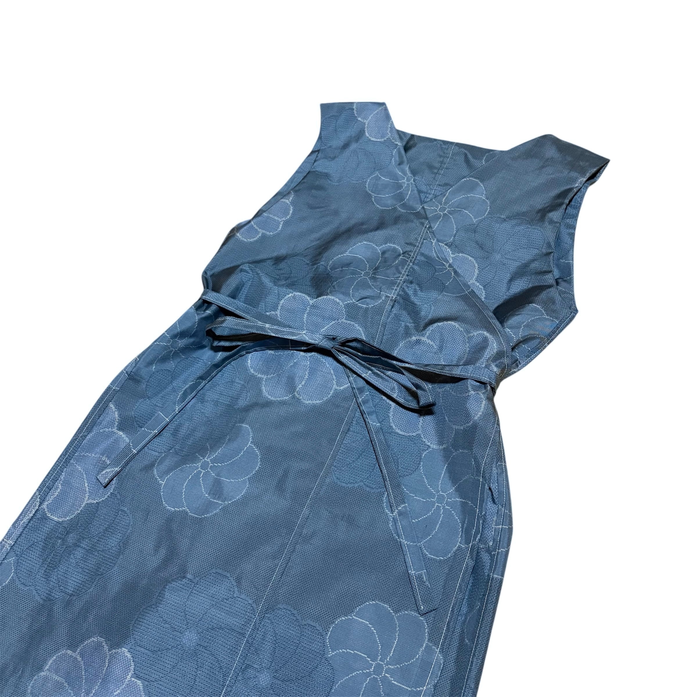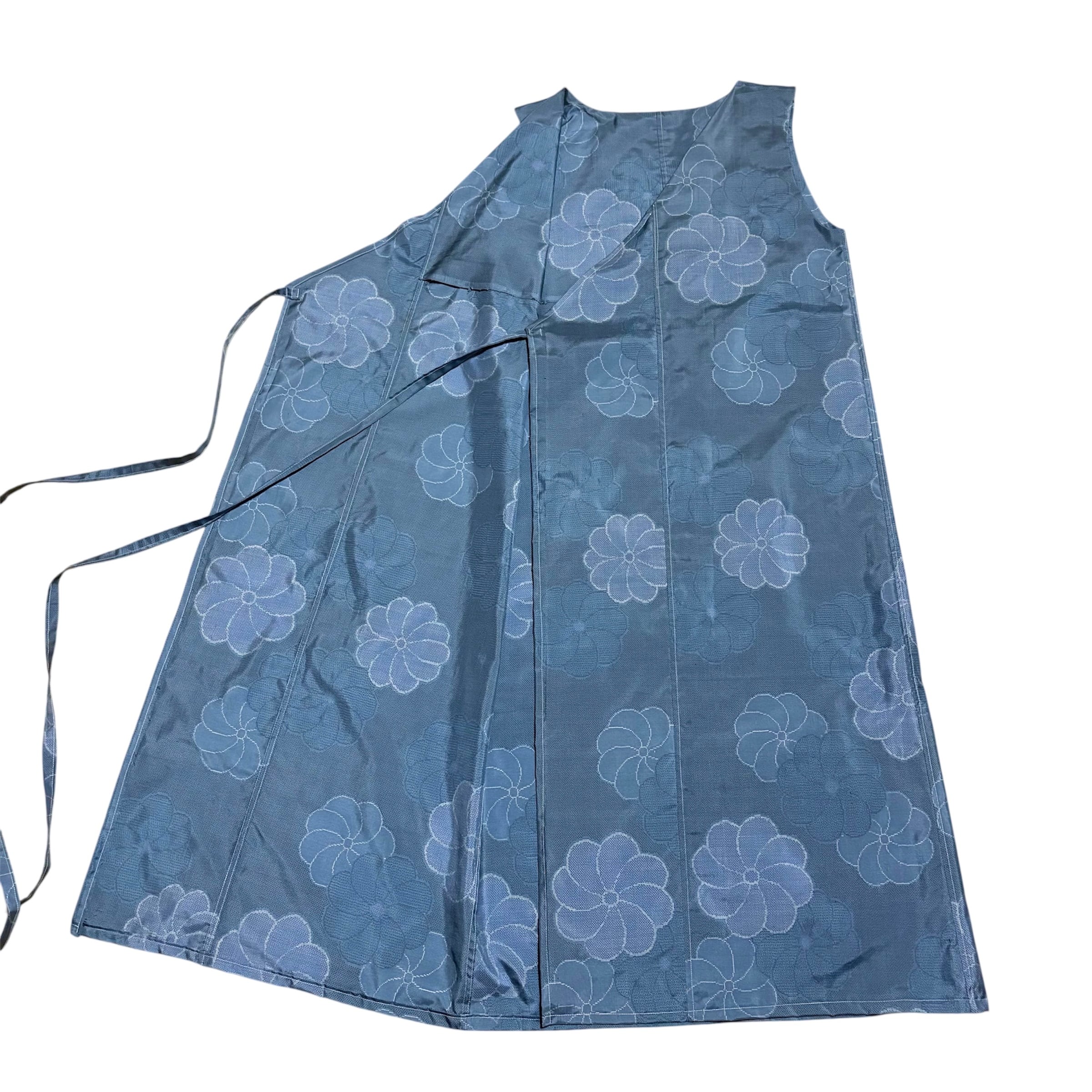 本場大島紬 着物リメイク カシュクールワンピース 舞花文様 9マルキ 左右両用 水色 ブルー 正絹