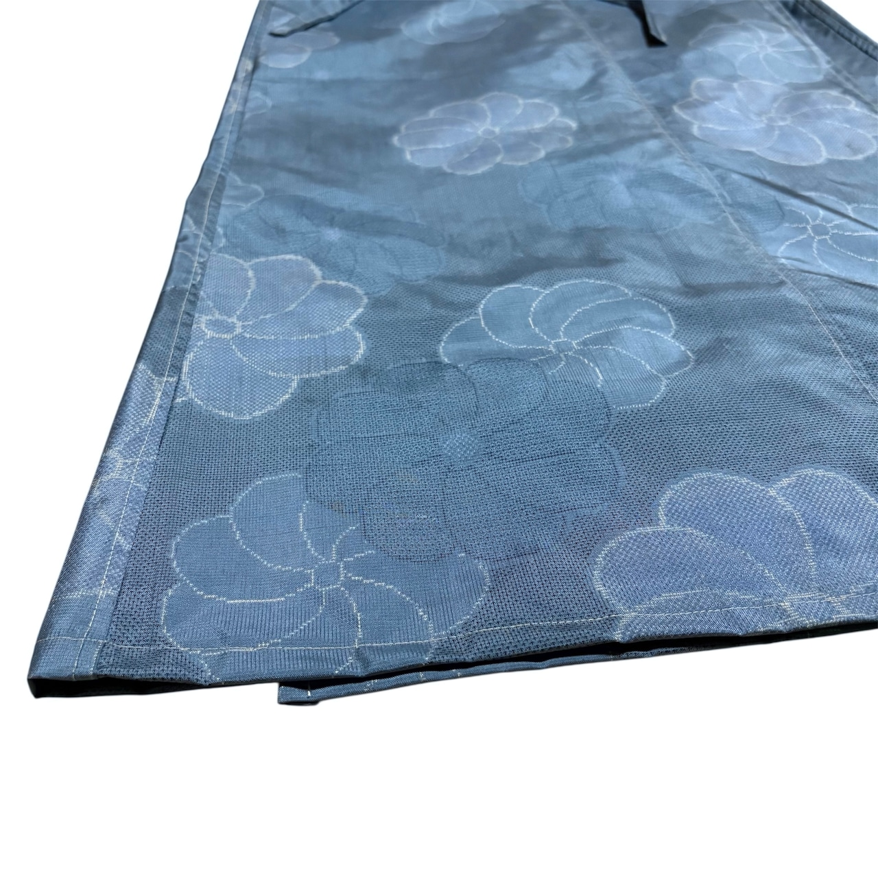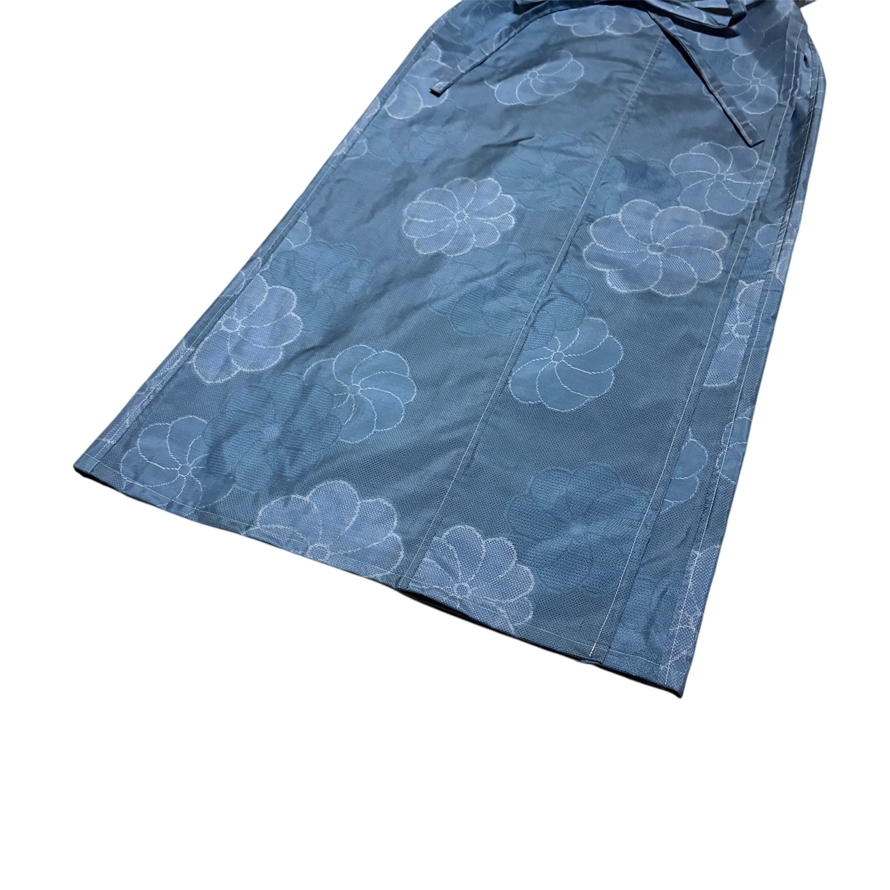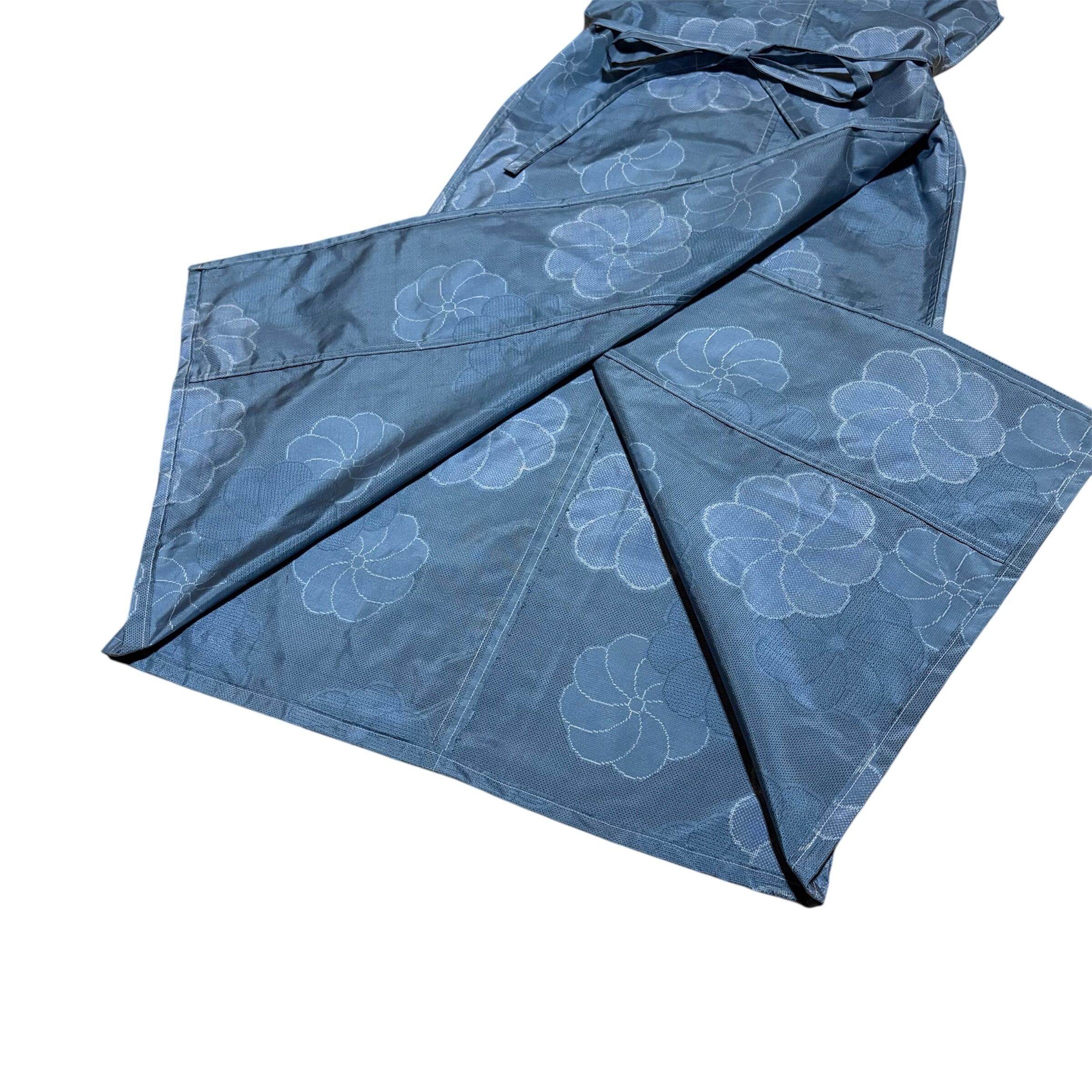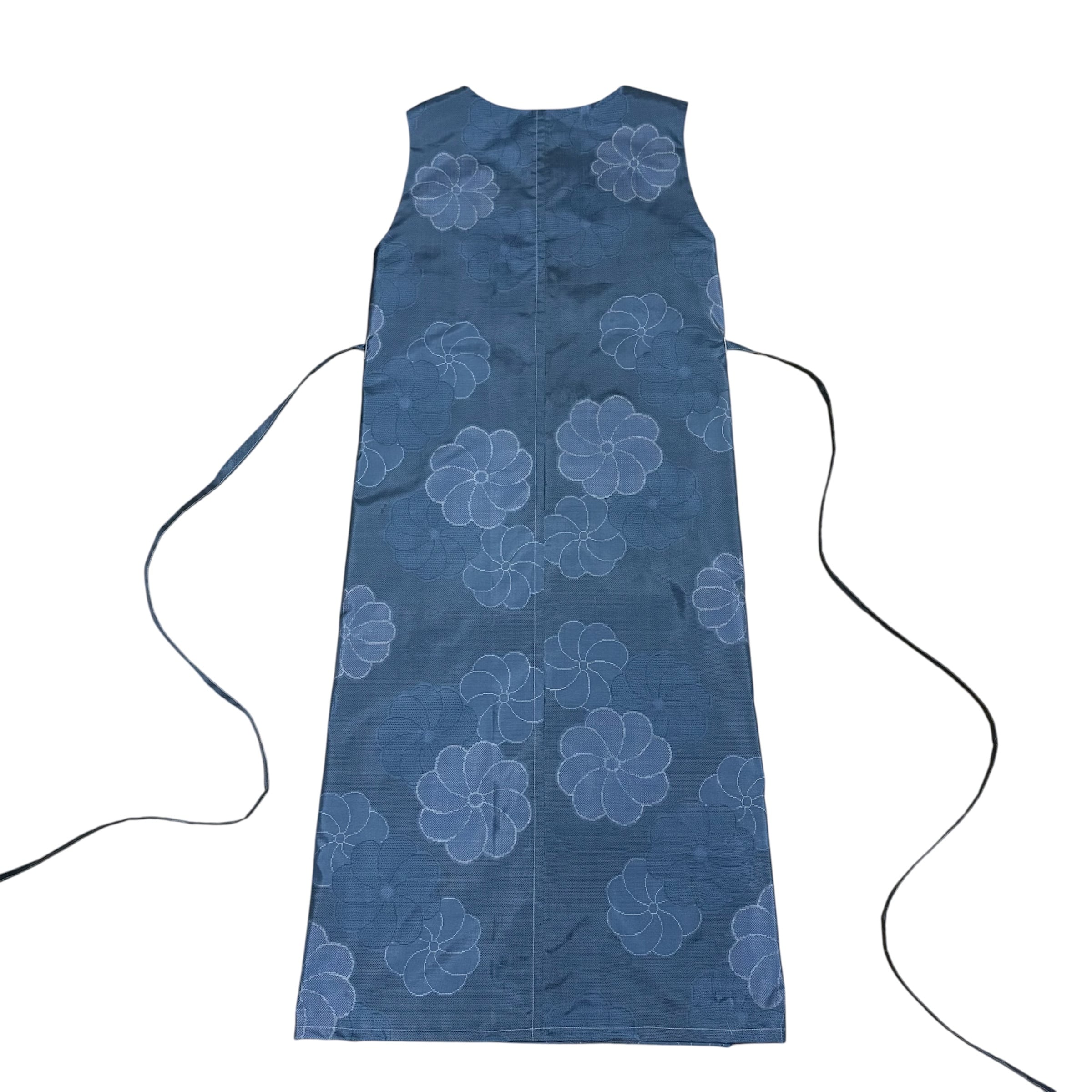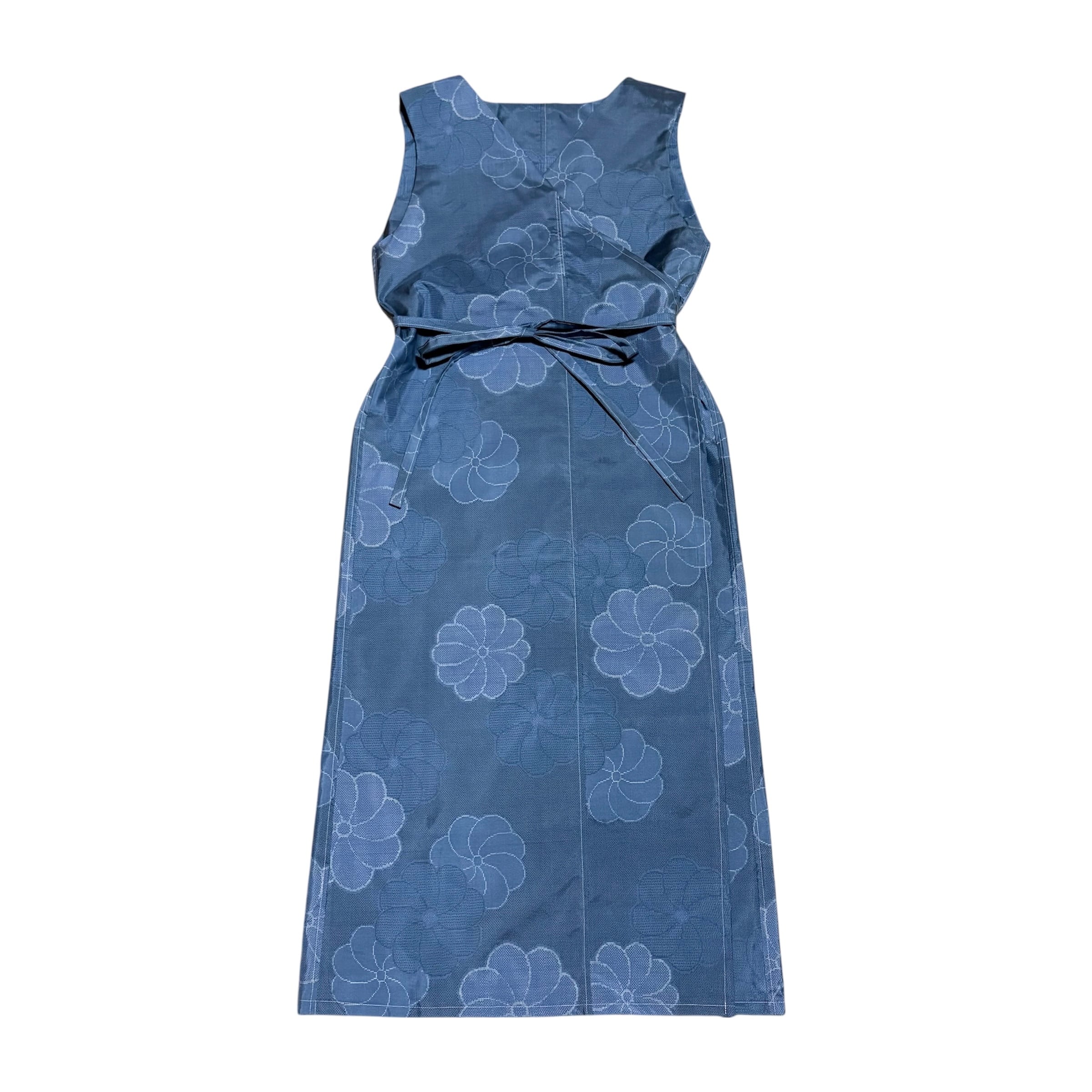 本場大島紬 着物リメイク カシュクールワンピース 舞花文様 9マルキ 左右両用 水色 ブルー 正絹