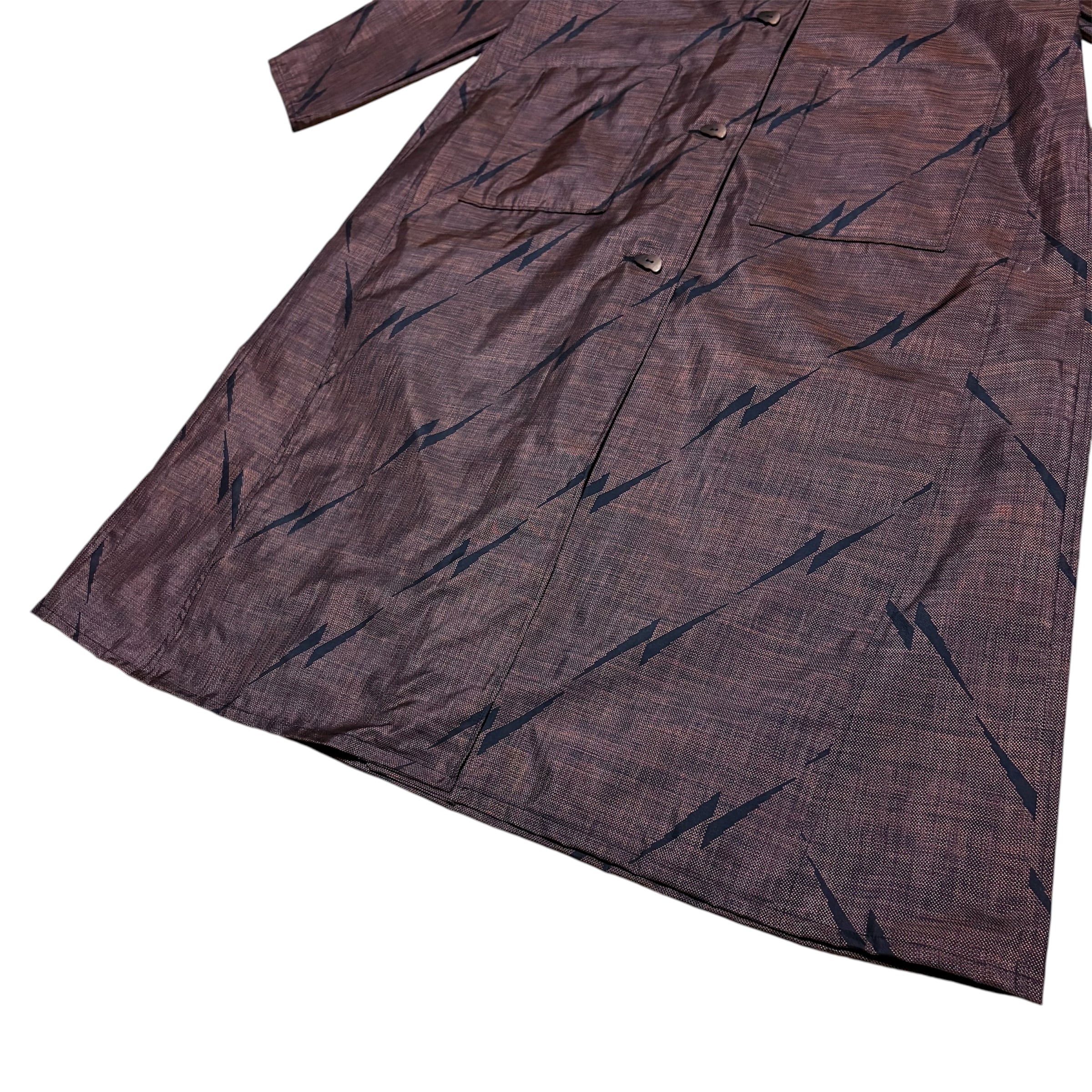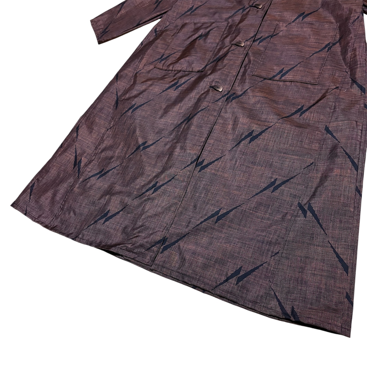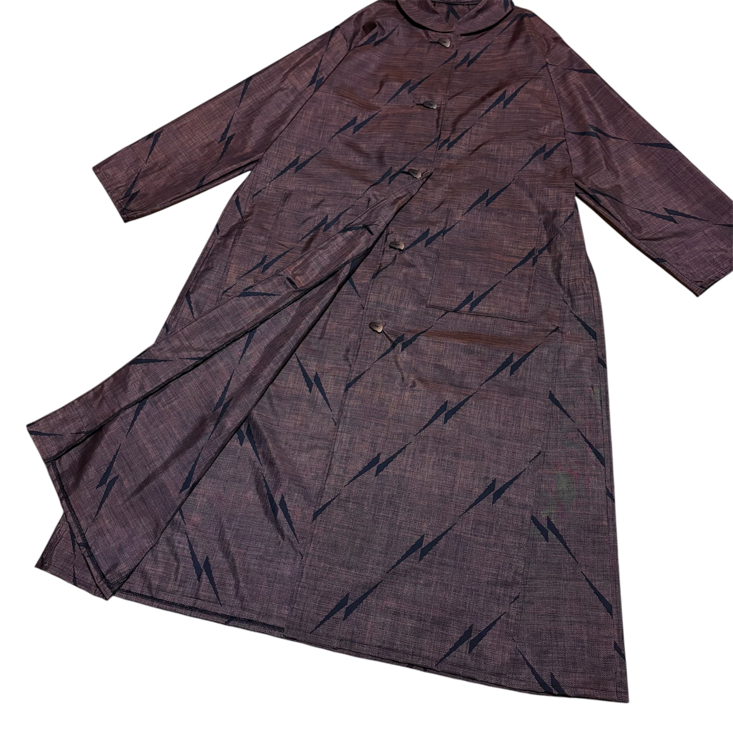 本場大島紬 イナズマ柄 コートワンピース 丸襟 9マルキ 吉祥文様 変形ボタン ロング フレア