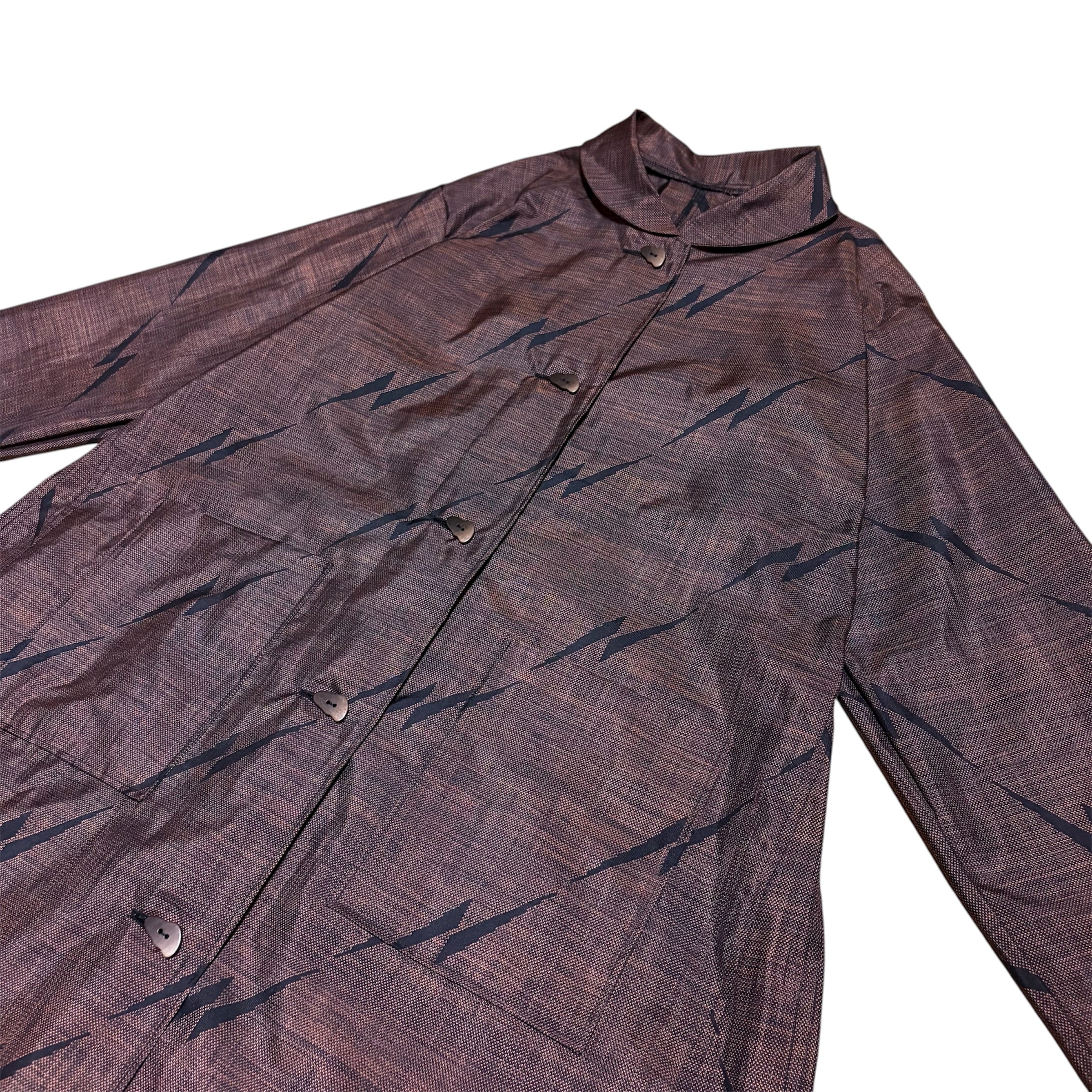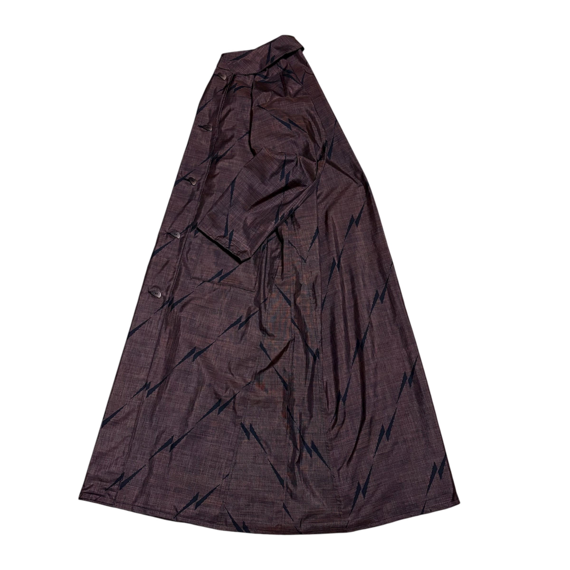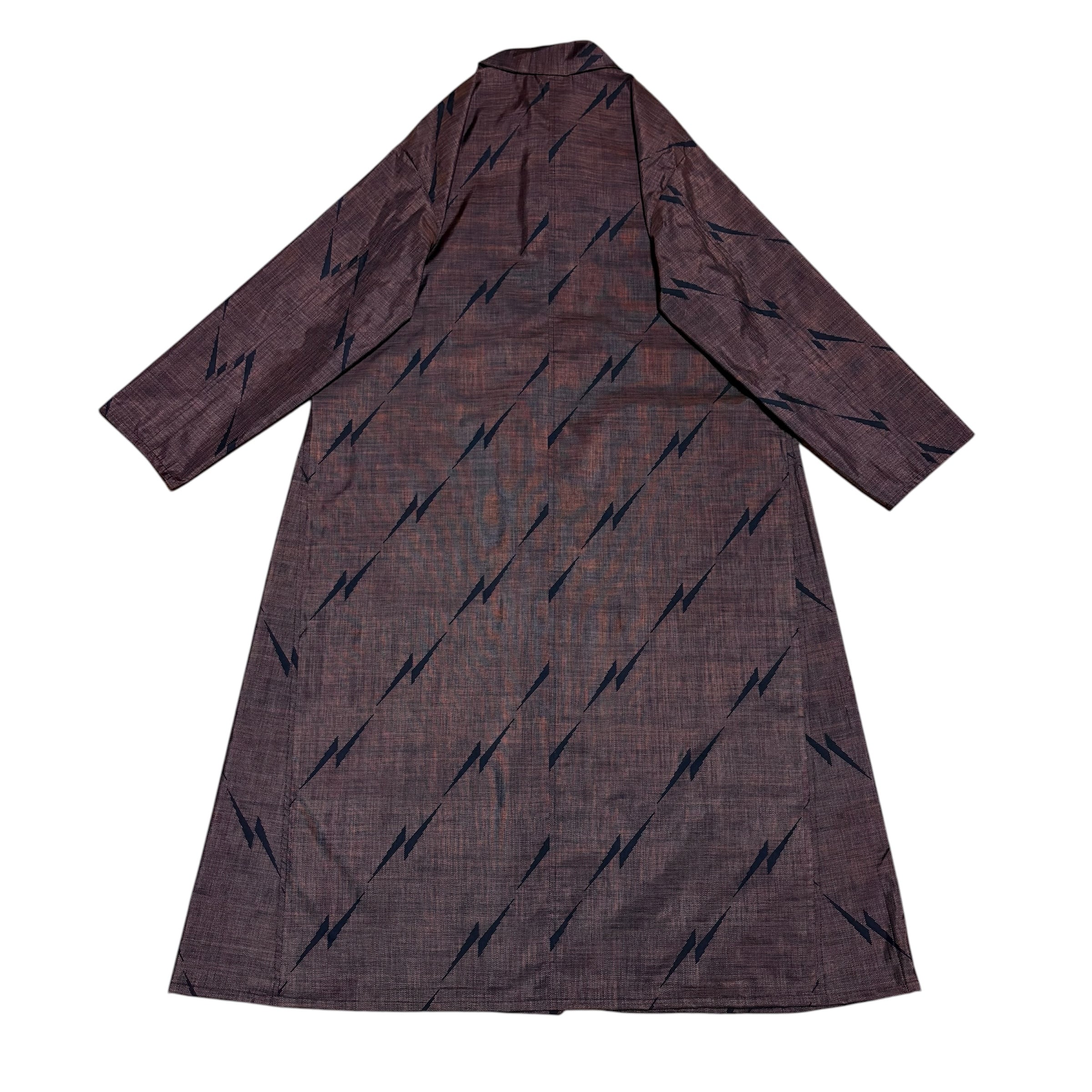 本場大島紬 イナズマ柄 コートワンピース 丸襟 9マルキ 吉祥文様 変形ボタン ロング フレア