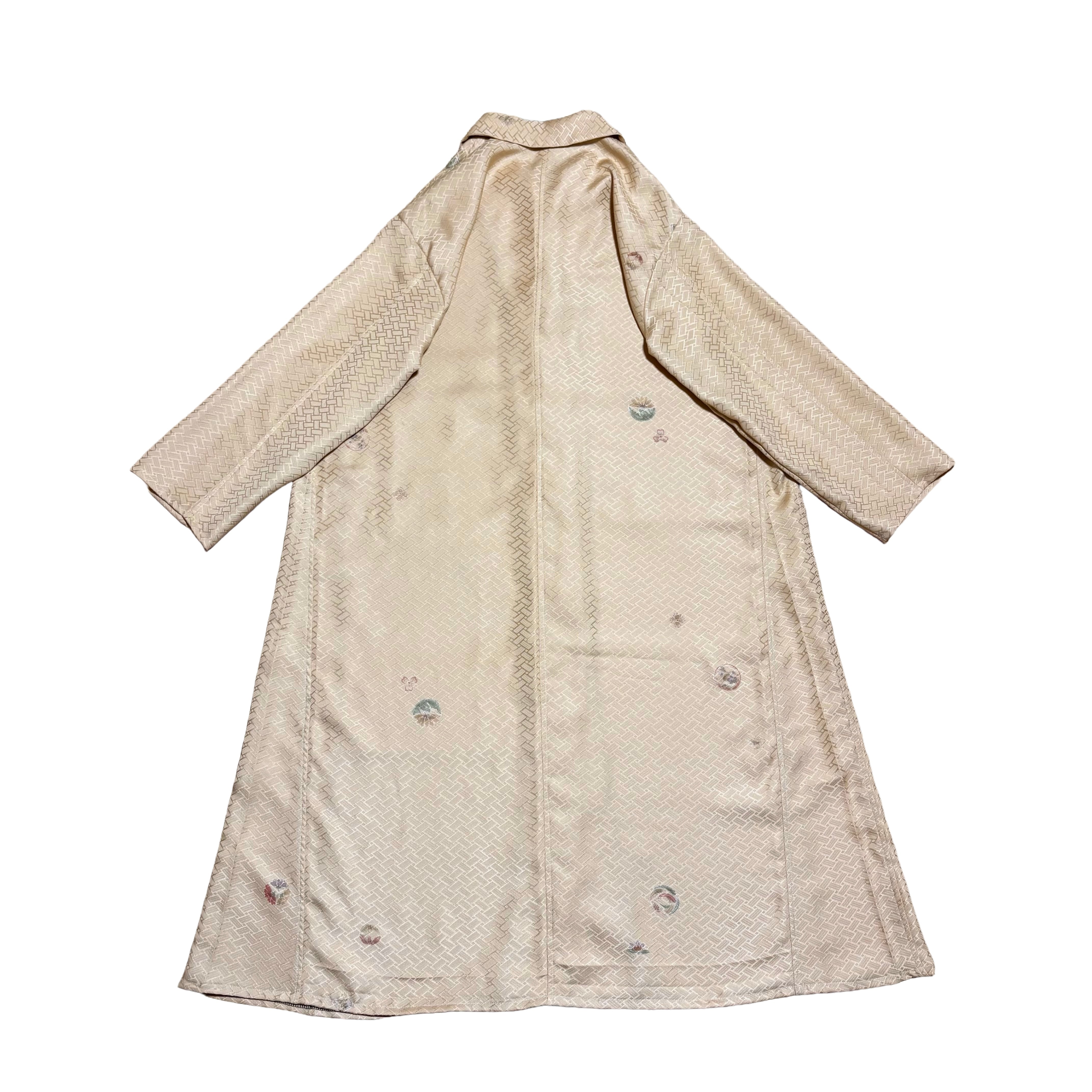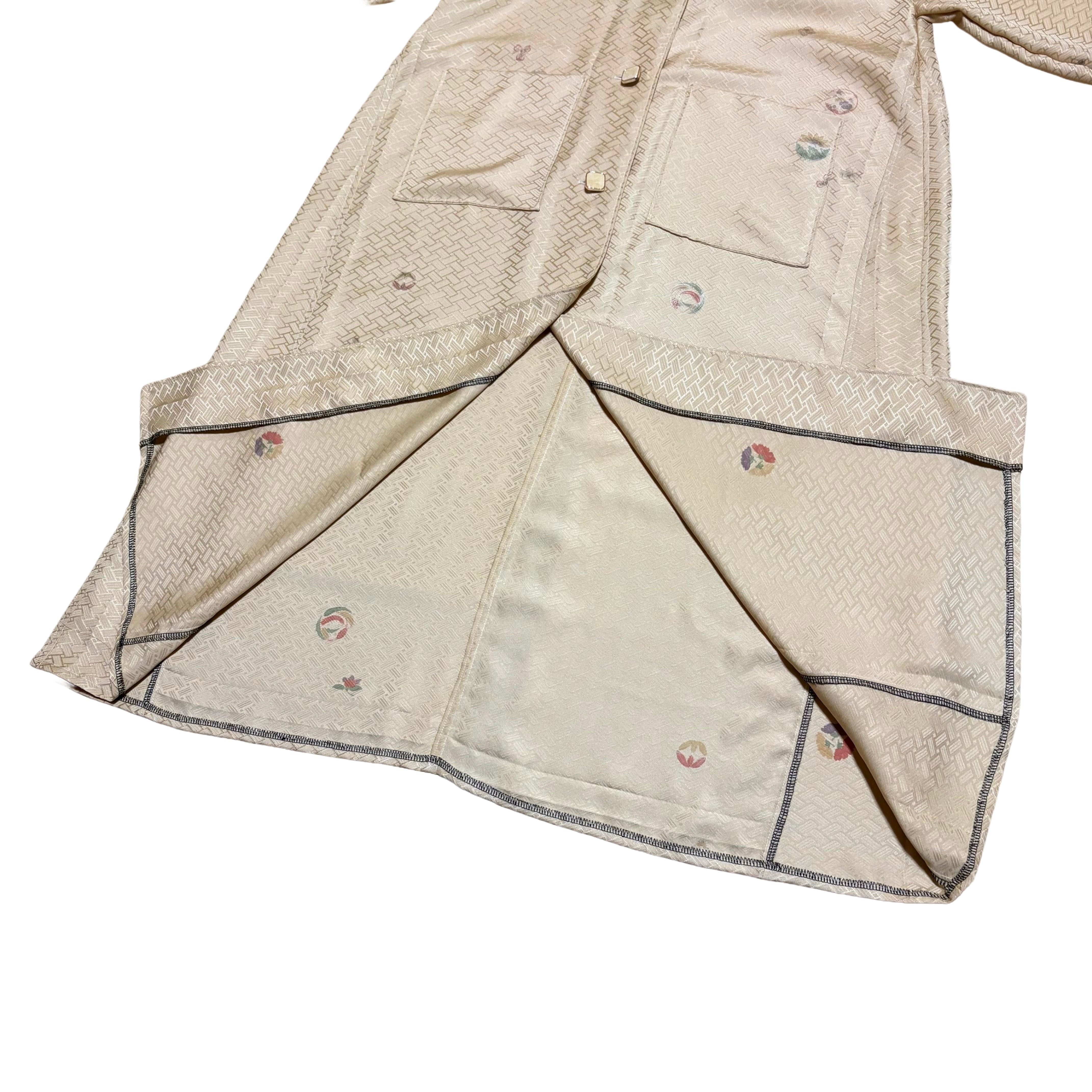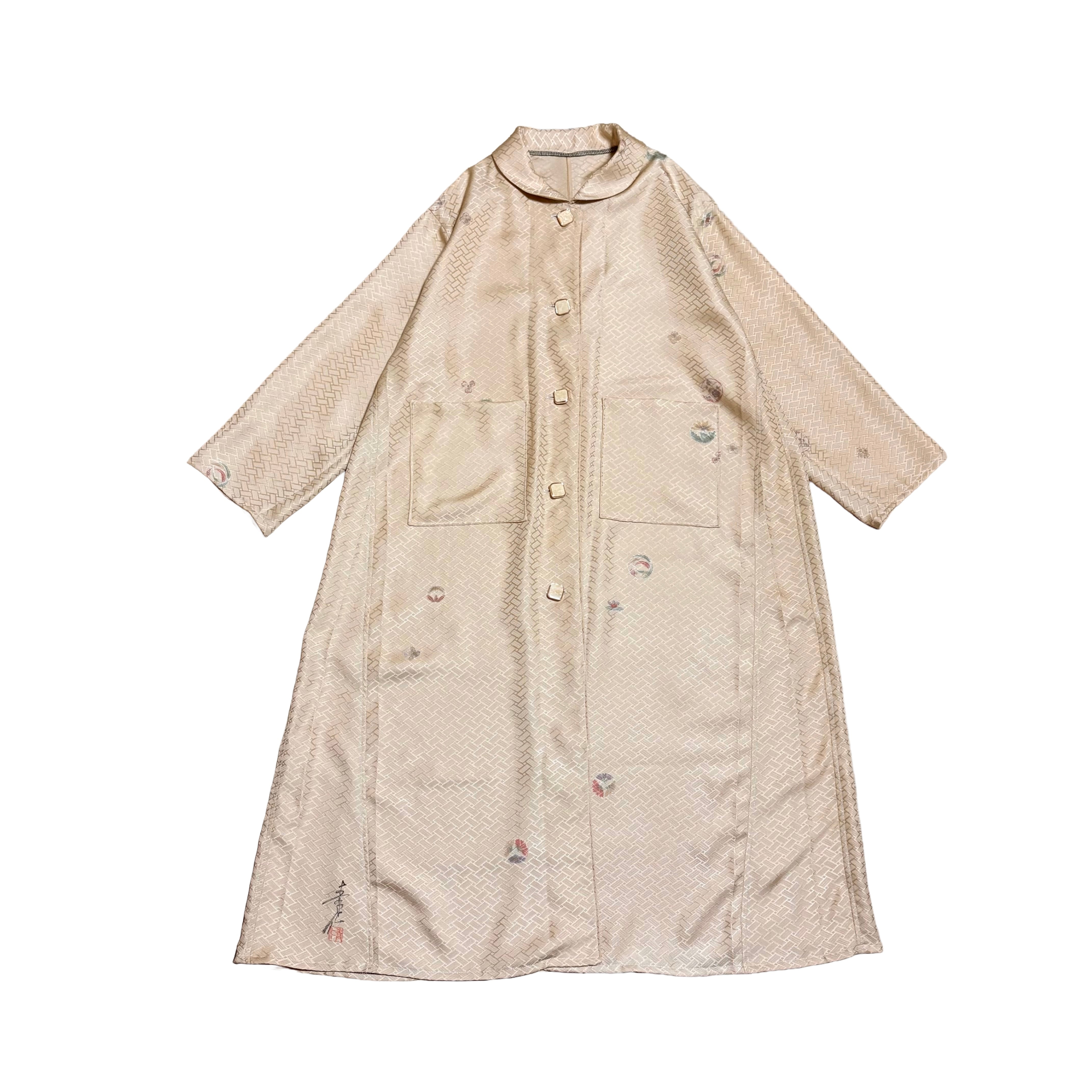 友禅作家の巨匠 浅井青仁作 小紋 着物リメイク コートワンピース 丸襟 草花丸文 金彩 ロング フレア サイン入り