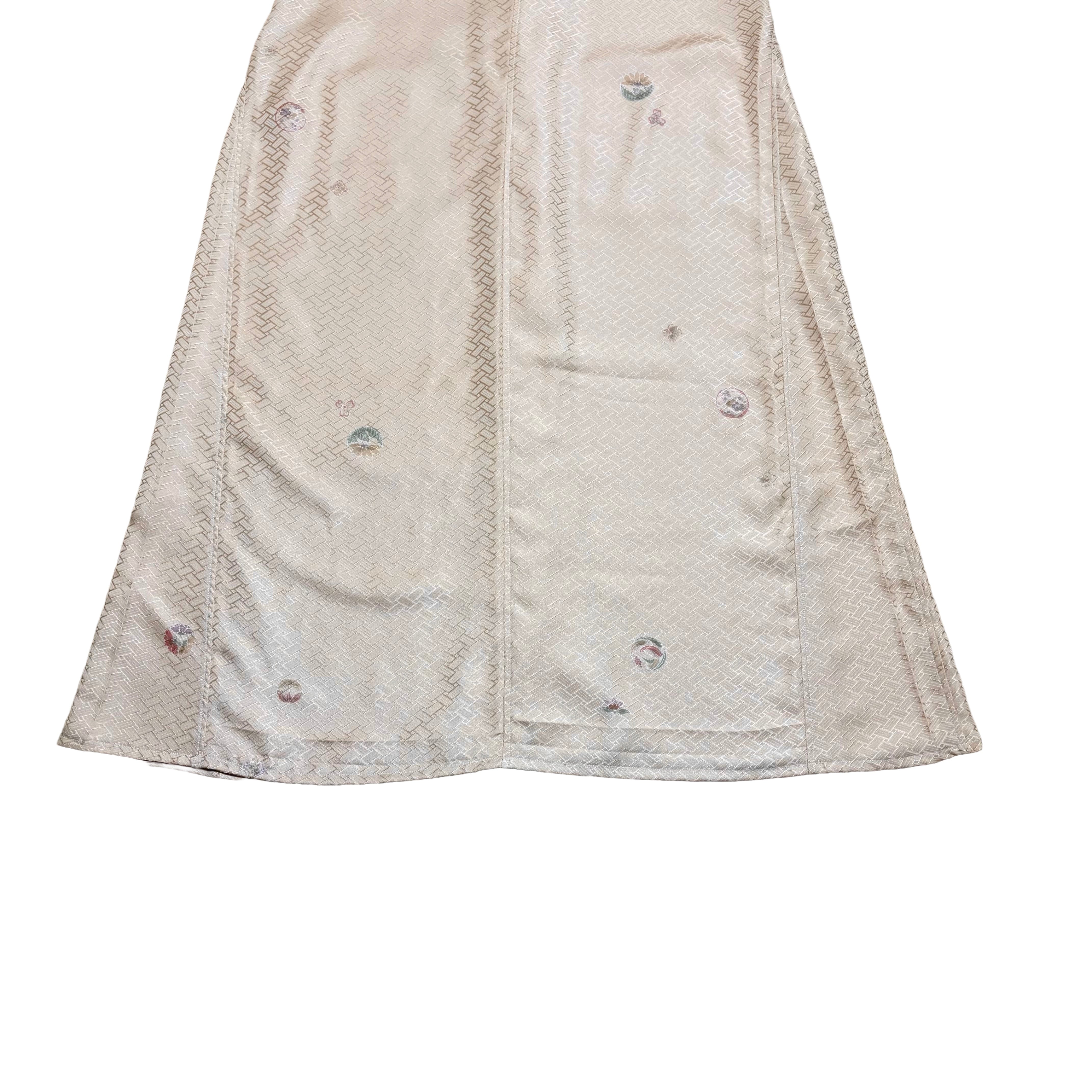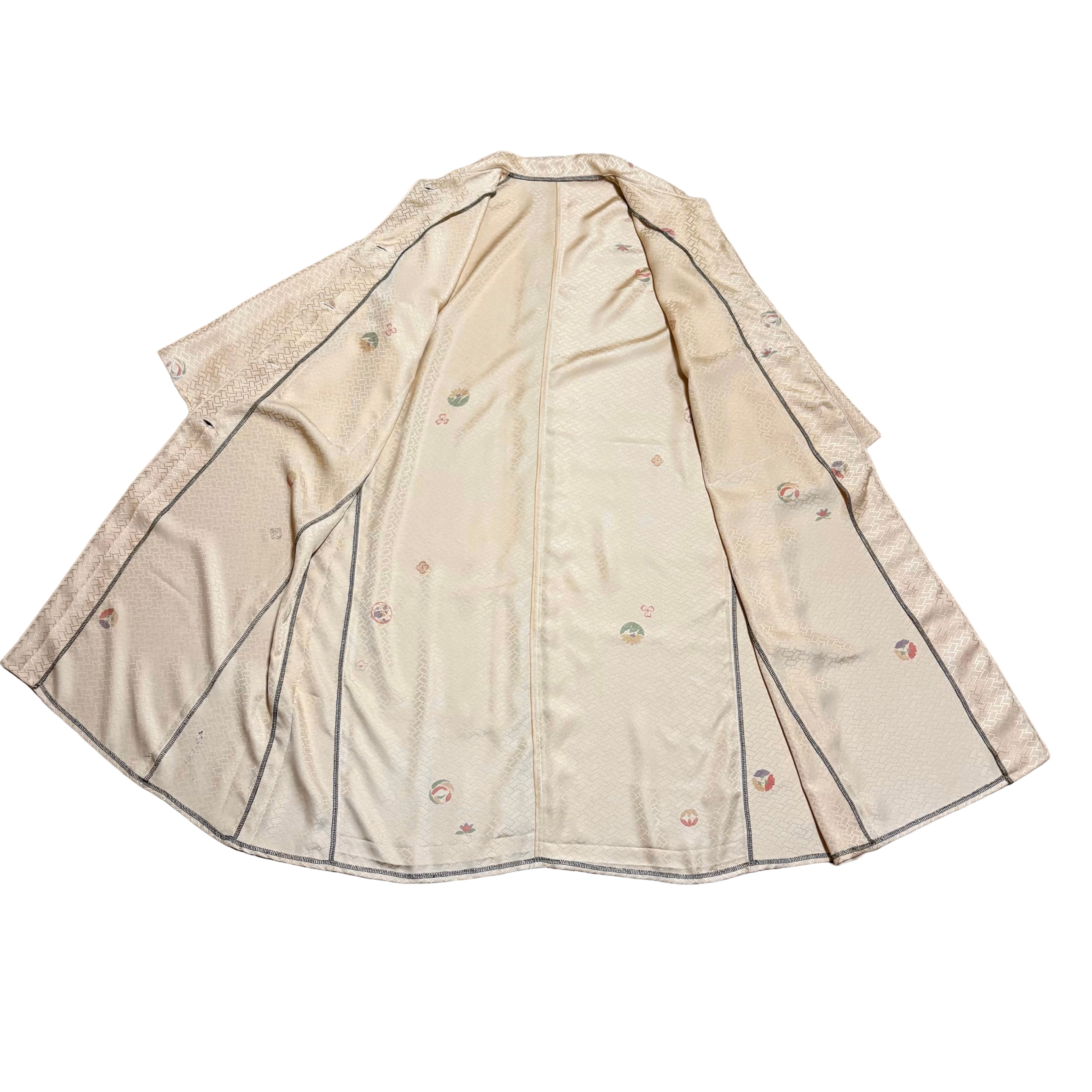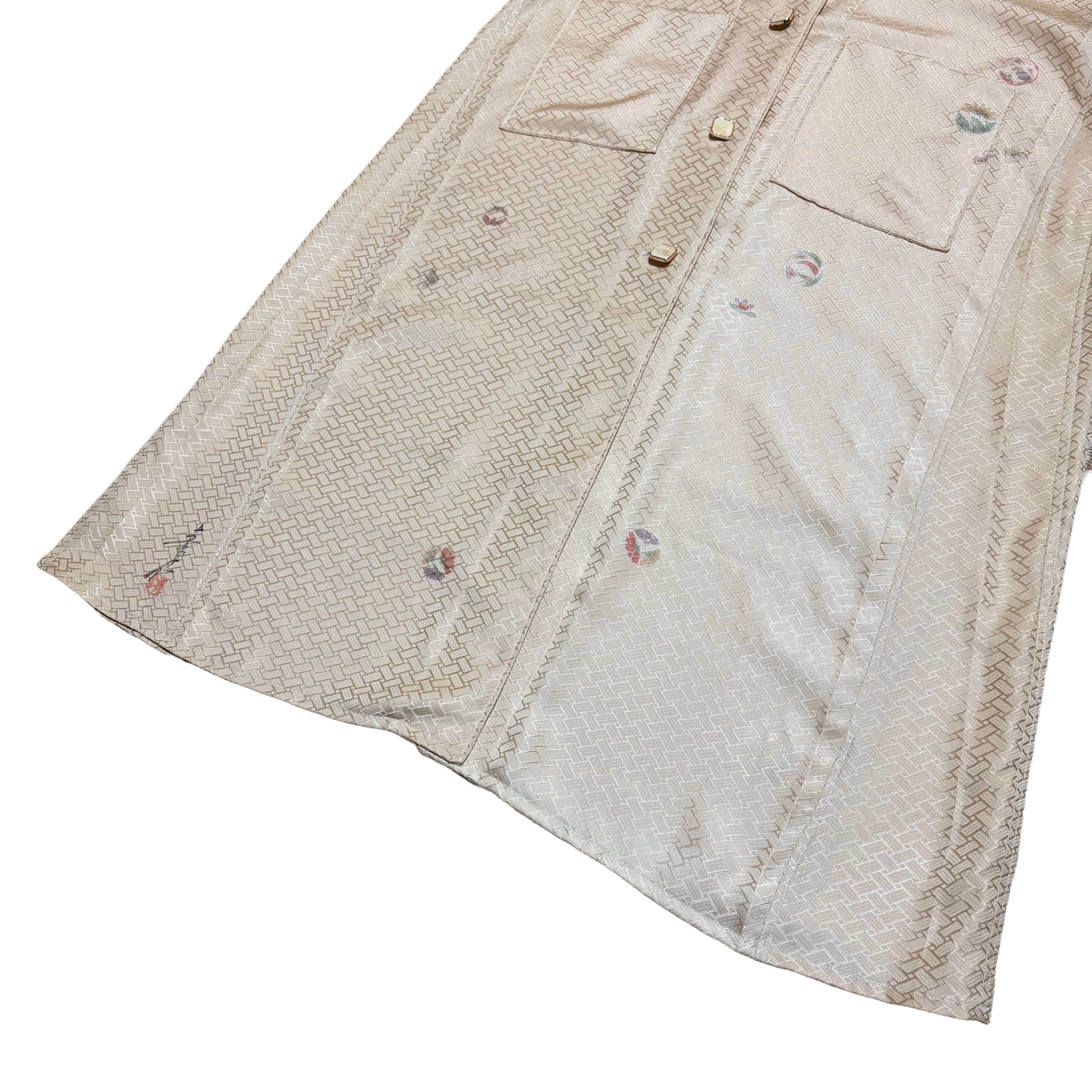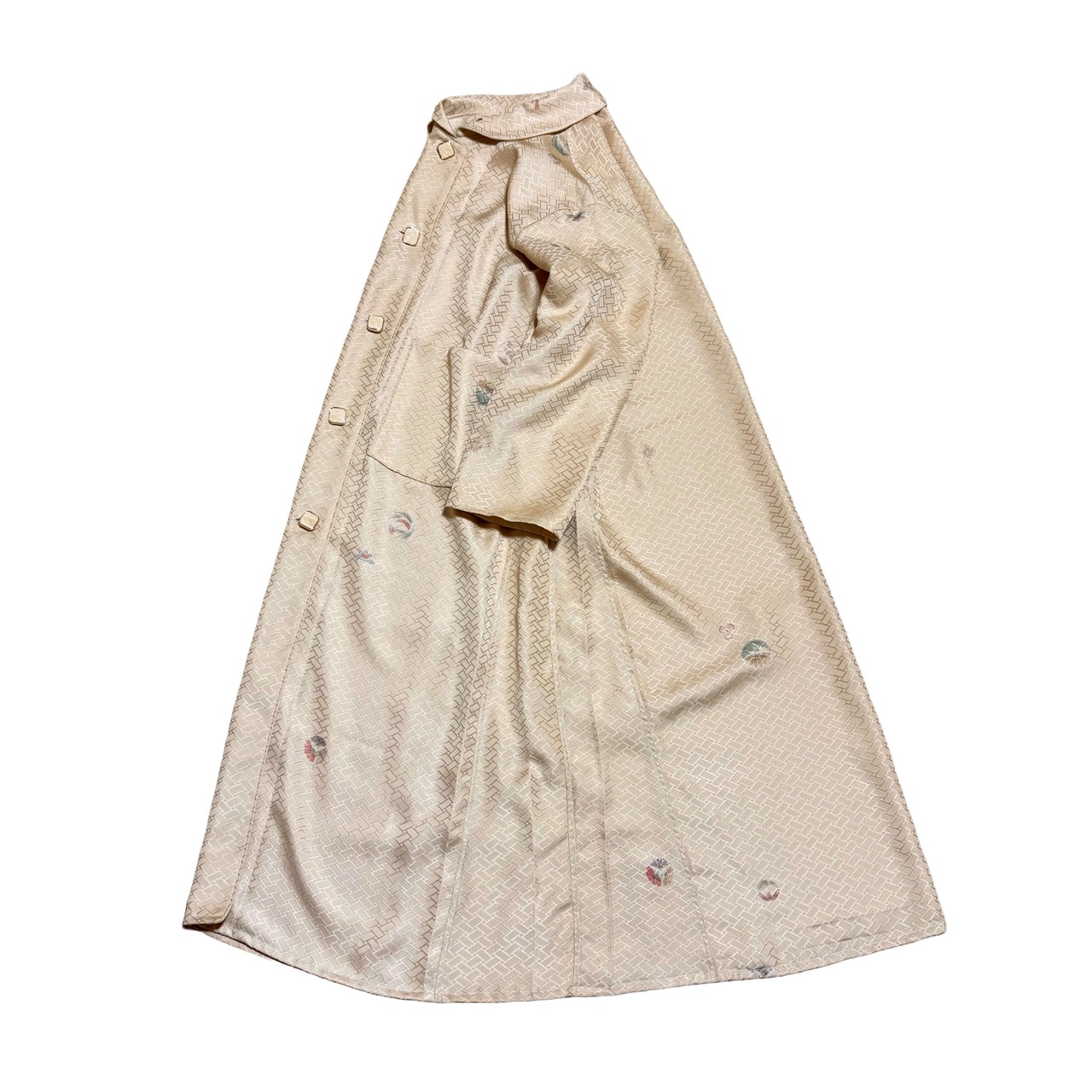 友禅作家の巨匠 浅井青仁作 小紋 着物リメイク コートワンピース 丸襟 草花丸文 金彩 ロング フレア サイン入り
