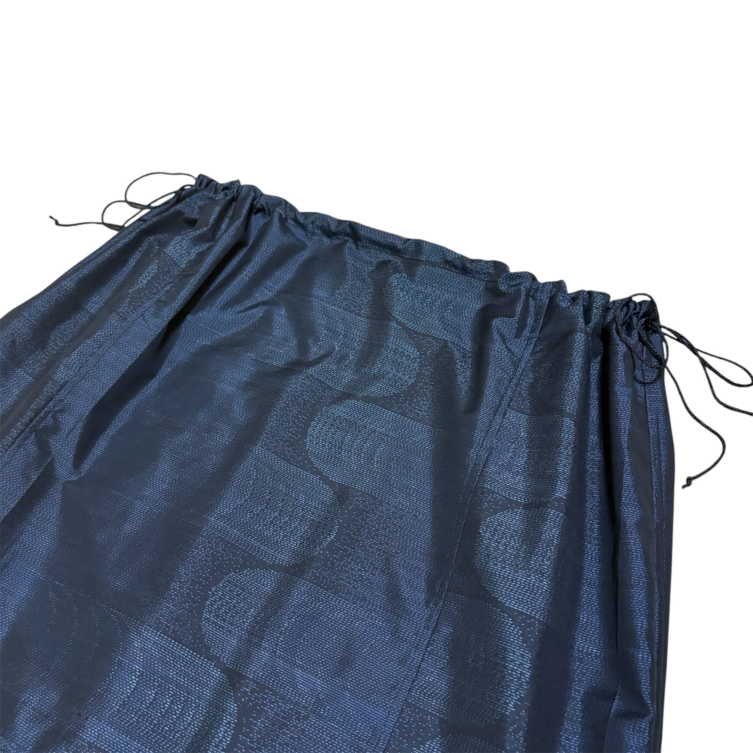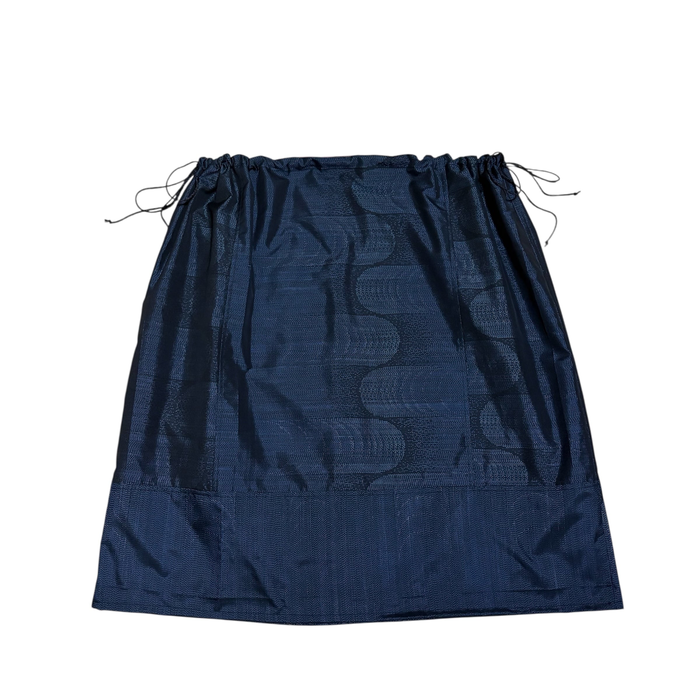 大島紬 着物リメイク 巾着スカート 抽象文様 打掛けひも 裏地あり 絹シルク100%