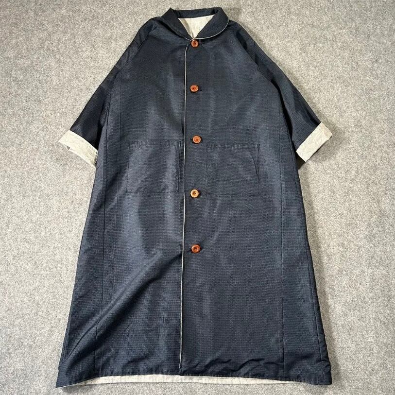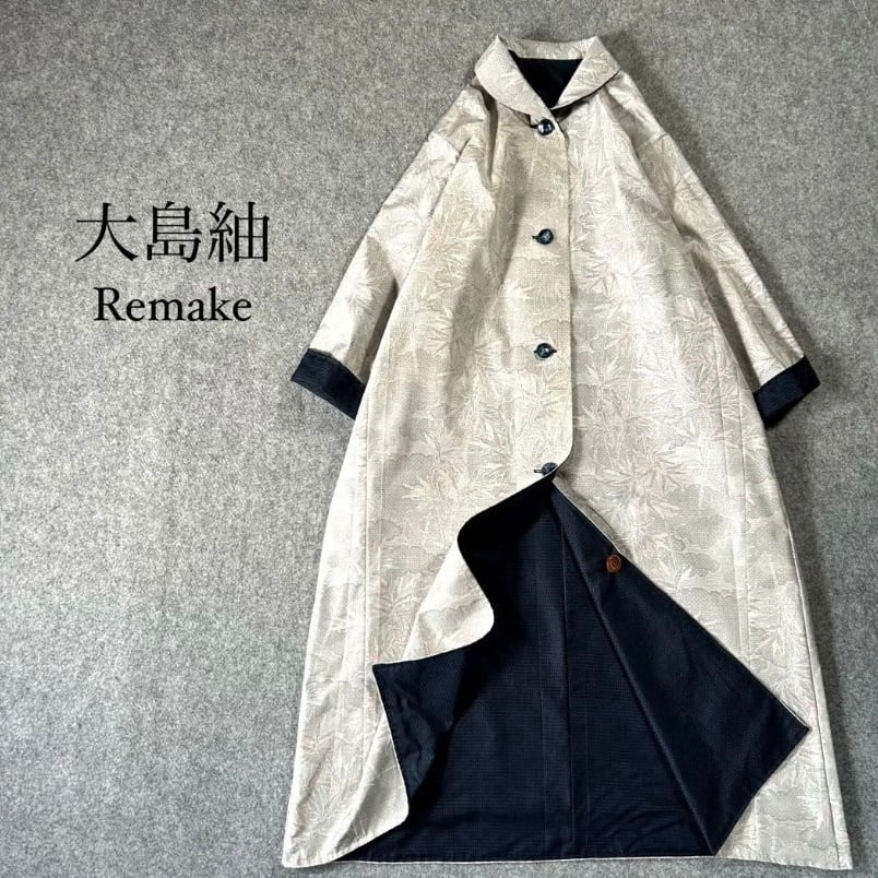 着物リメイク 白大島 リバーシブル ロング コート マキシ 古布 羽織