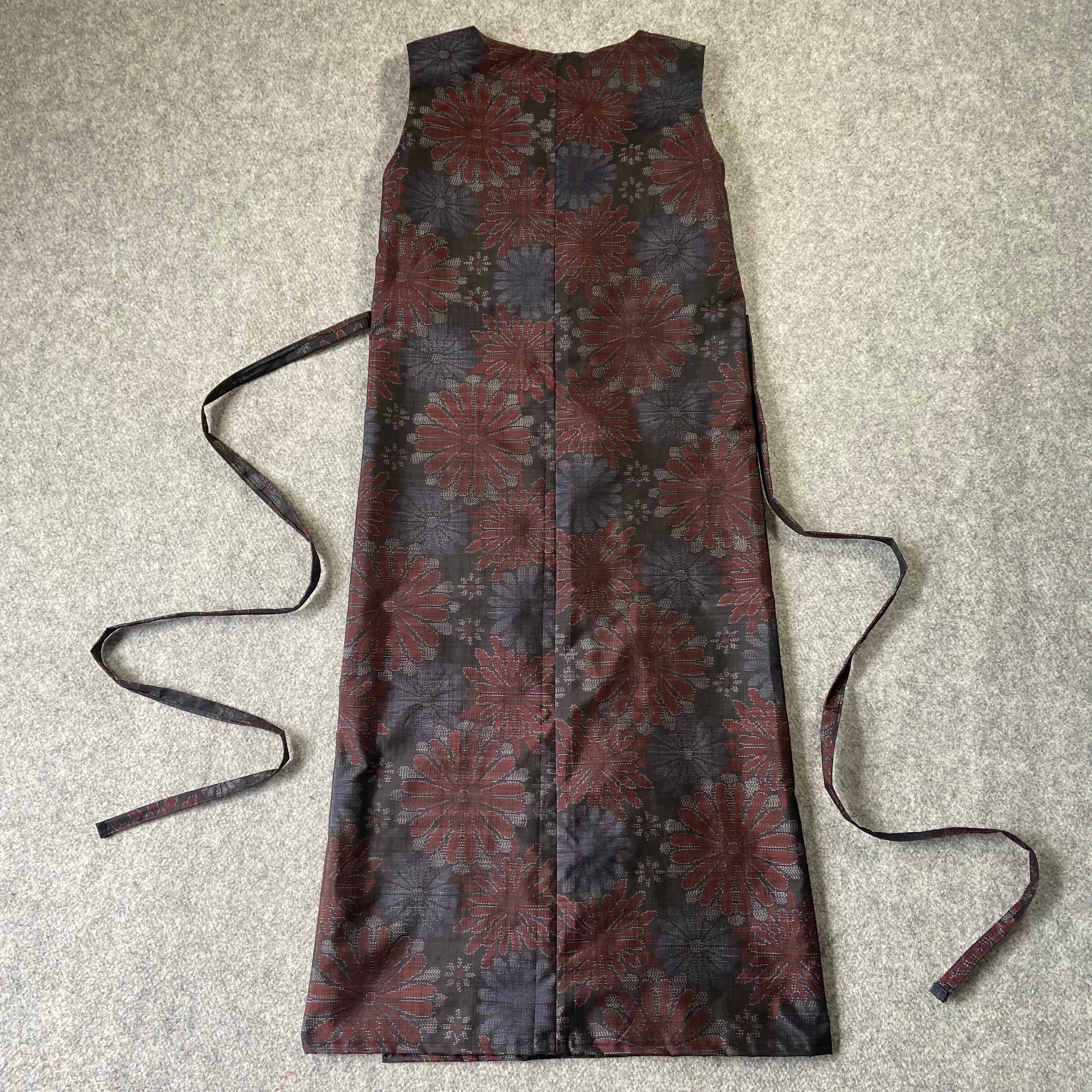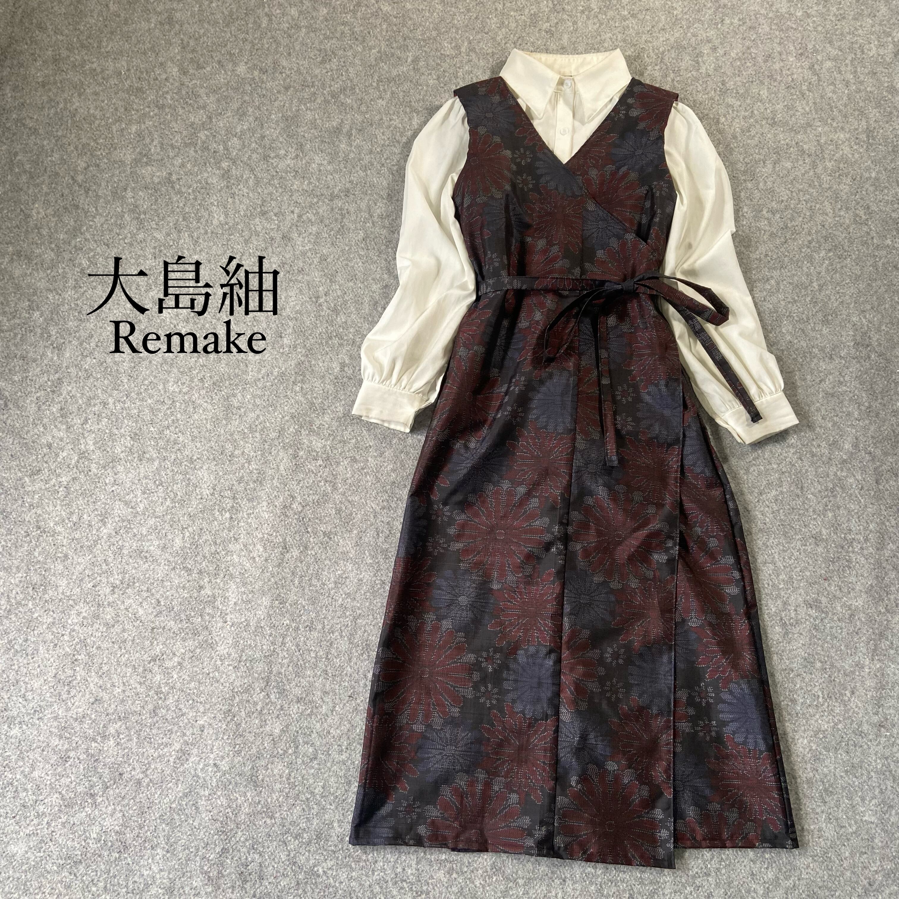 大島紬 カシュクールワンピース 着物リメイク 花柄 ロング 羽織り フリーサイズ