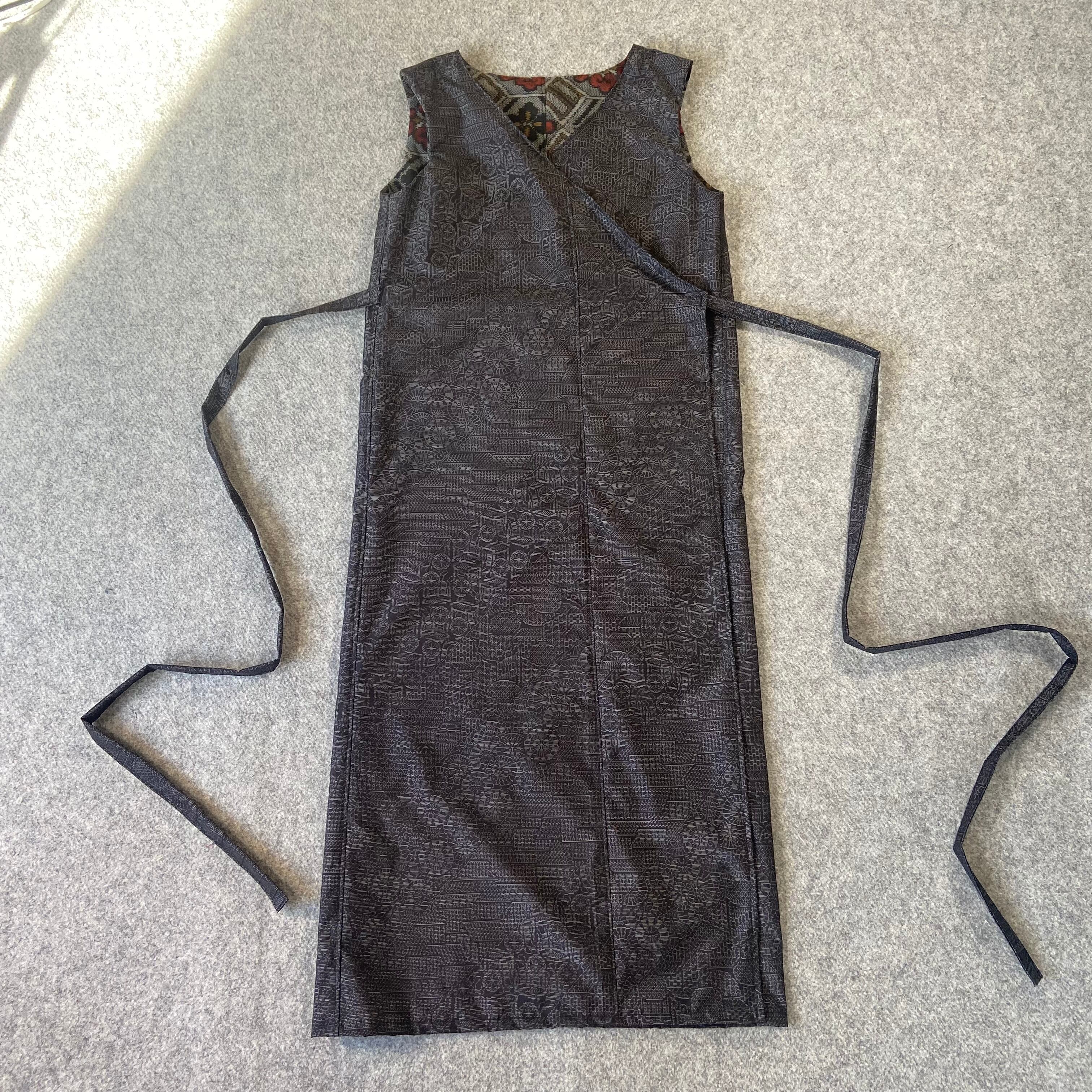大島紬 カシュクールワンピース 着物リメイク 花柄 ロング 羽織り フリーサイズ