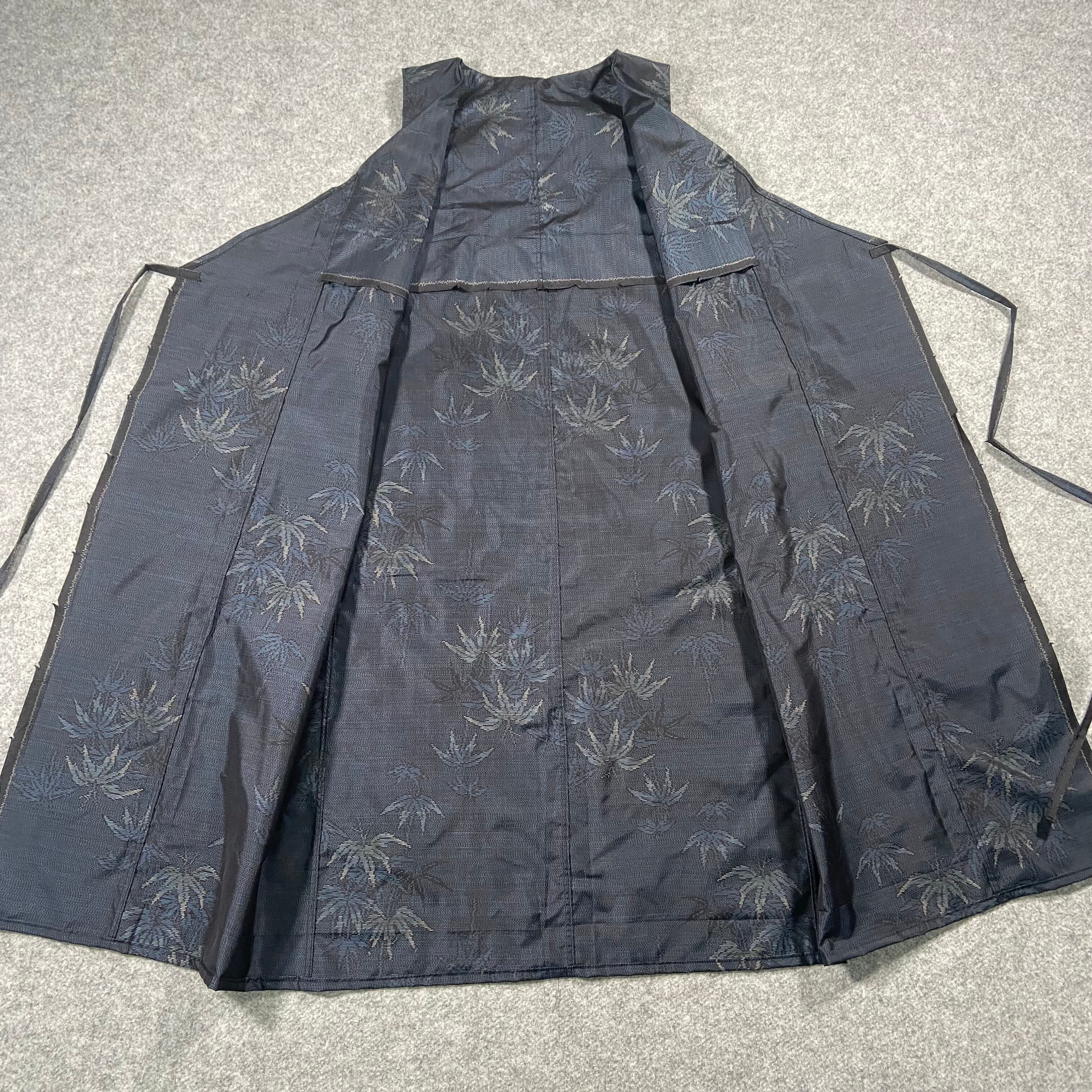 大島紬 カシュクールワンピース 着物リメイク 草葉柄 ロング 羽織 F ネイビー