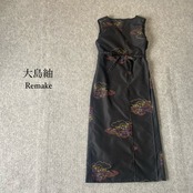 大島紬 カシュクールワンピース 着物リメイク 風景柄 ロング 羽織 フリーサイズ