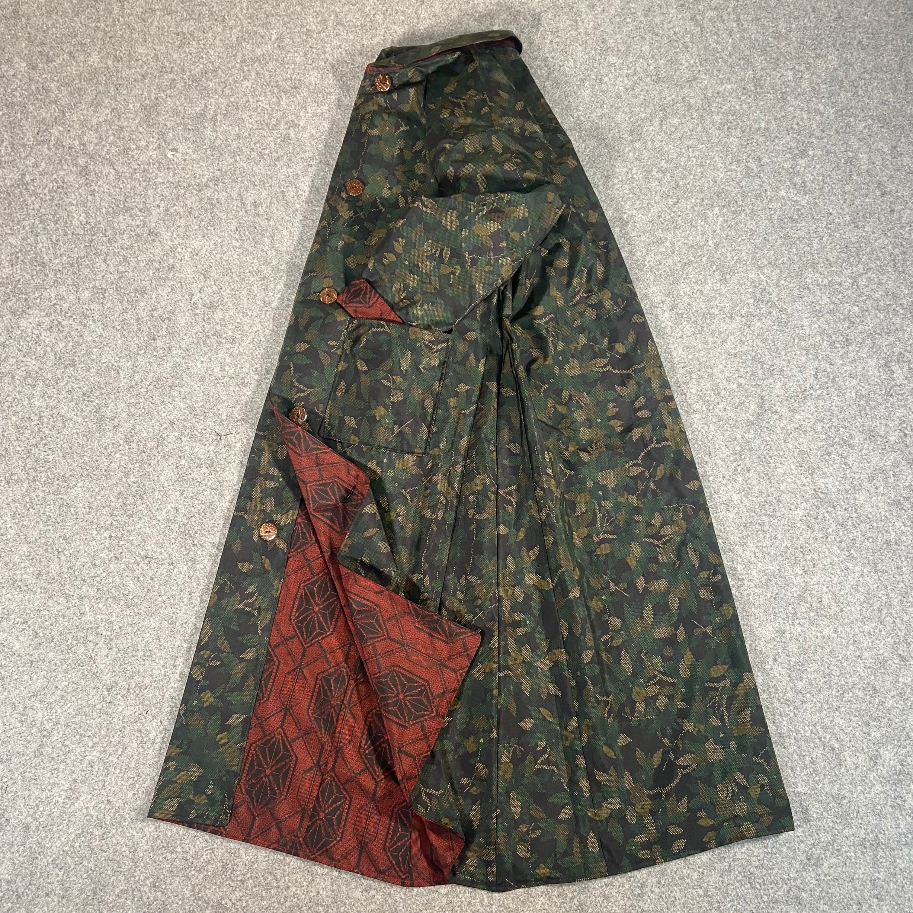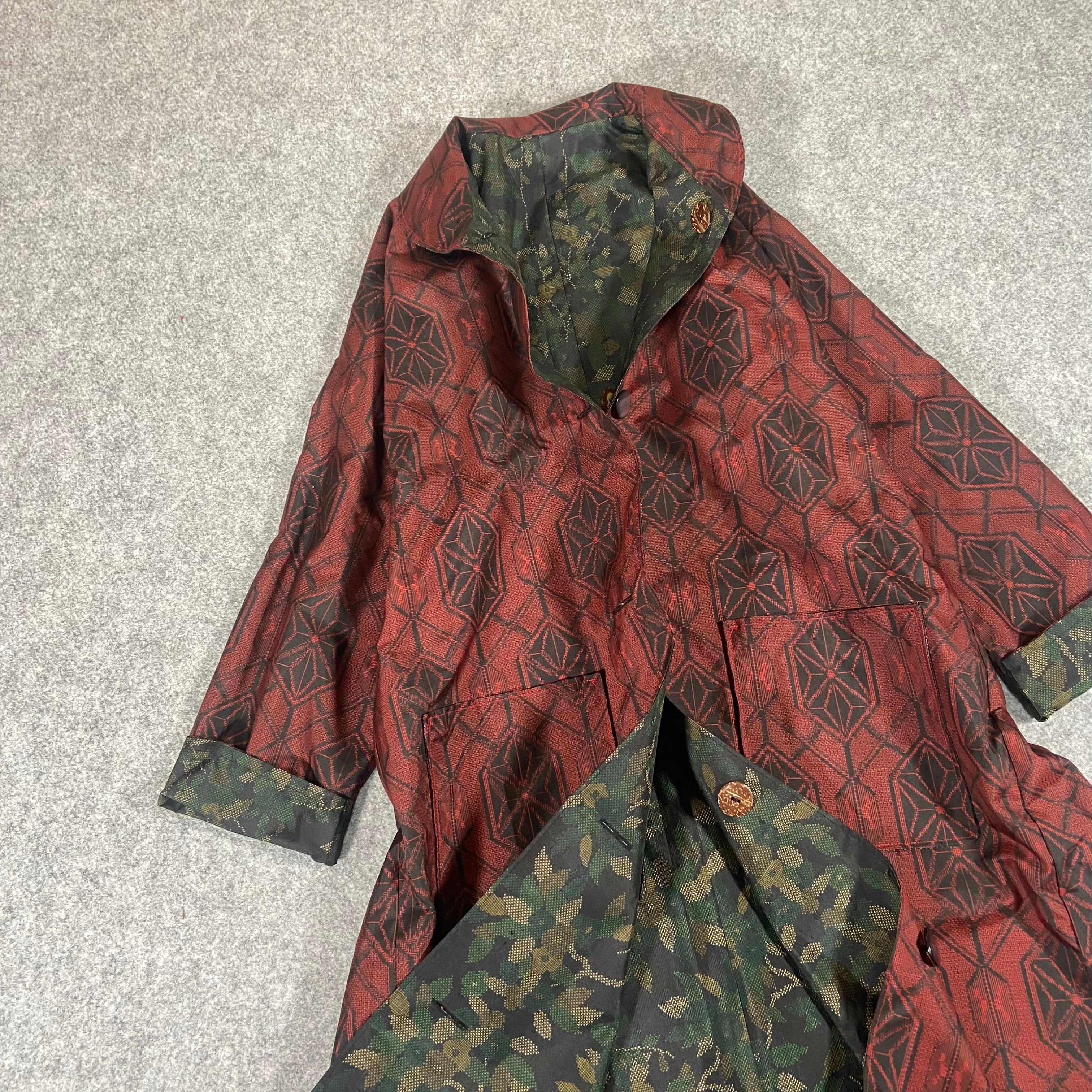 大島紬 着物リメイク 草木柄 リバーシブル ロング コート マキシ 古布 羽織