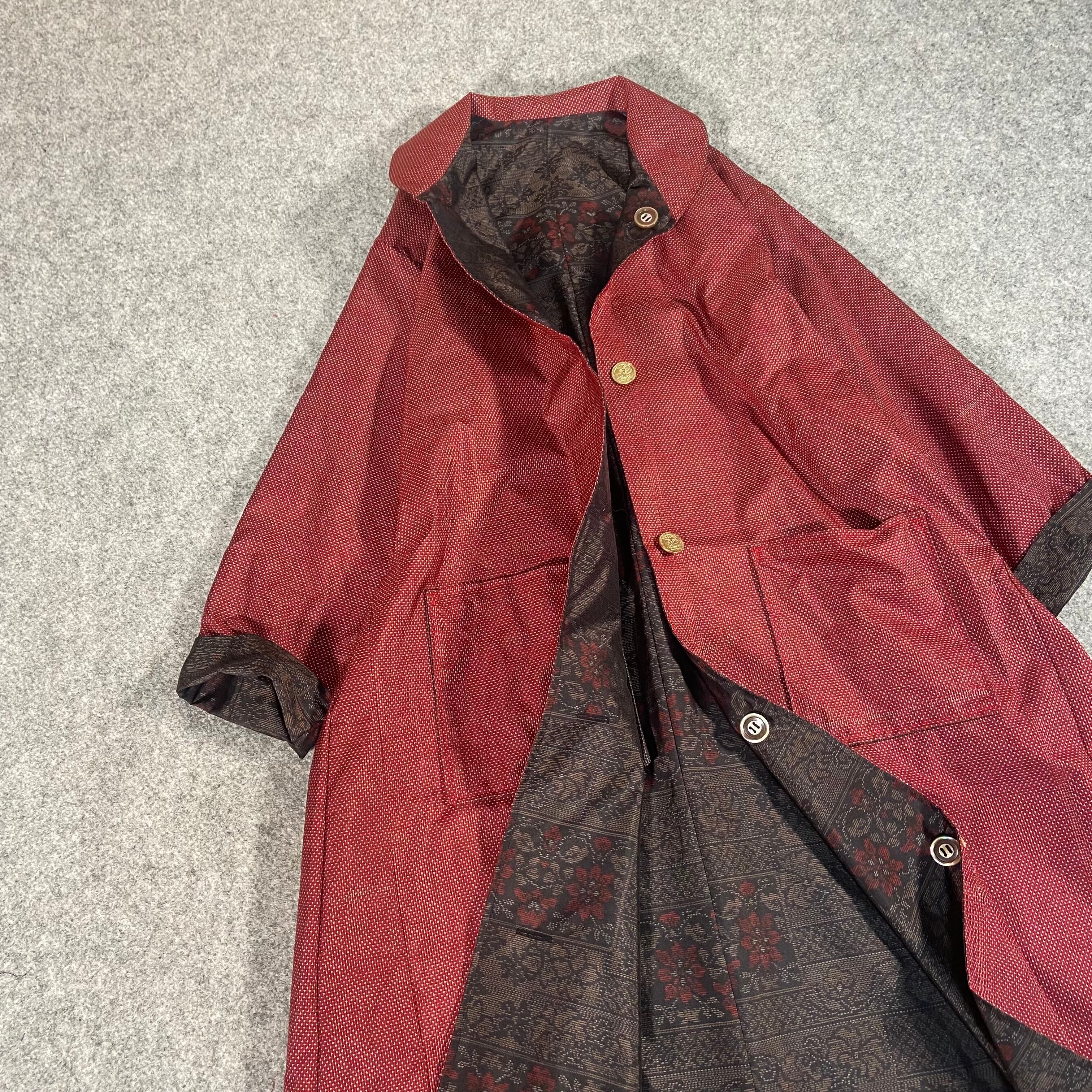 【大島紬】 着物リメイク 絣模様 リバーシブル ロング コート マキシ 雪ん子