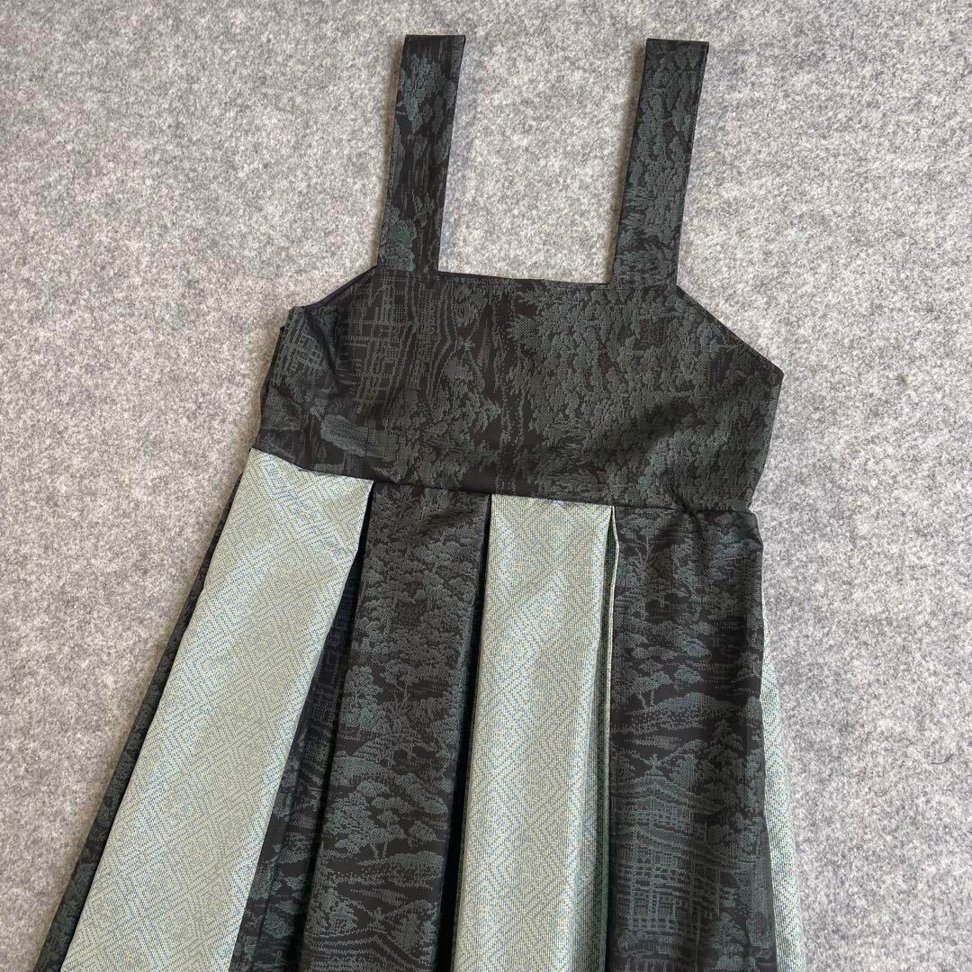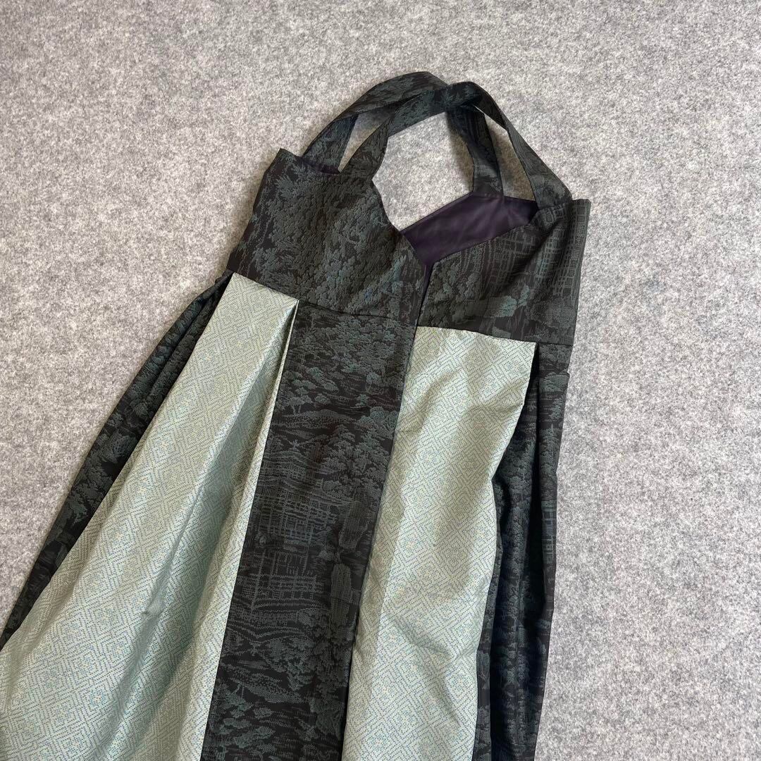 大島紬 ジャンパースカート 着物リメイク 龍郷 風景柄 パッチワーク ロング F