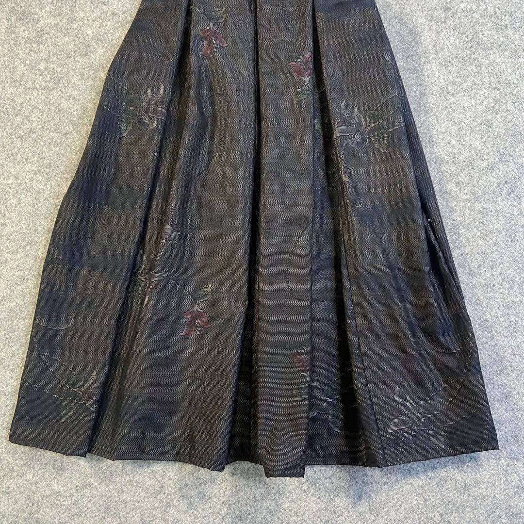大島紬 ジャンパースカート 着物リメイク 花柄 草木 風雲 ロング Fサイズ