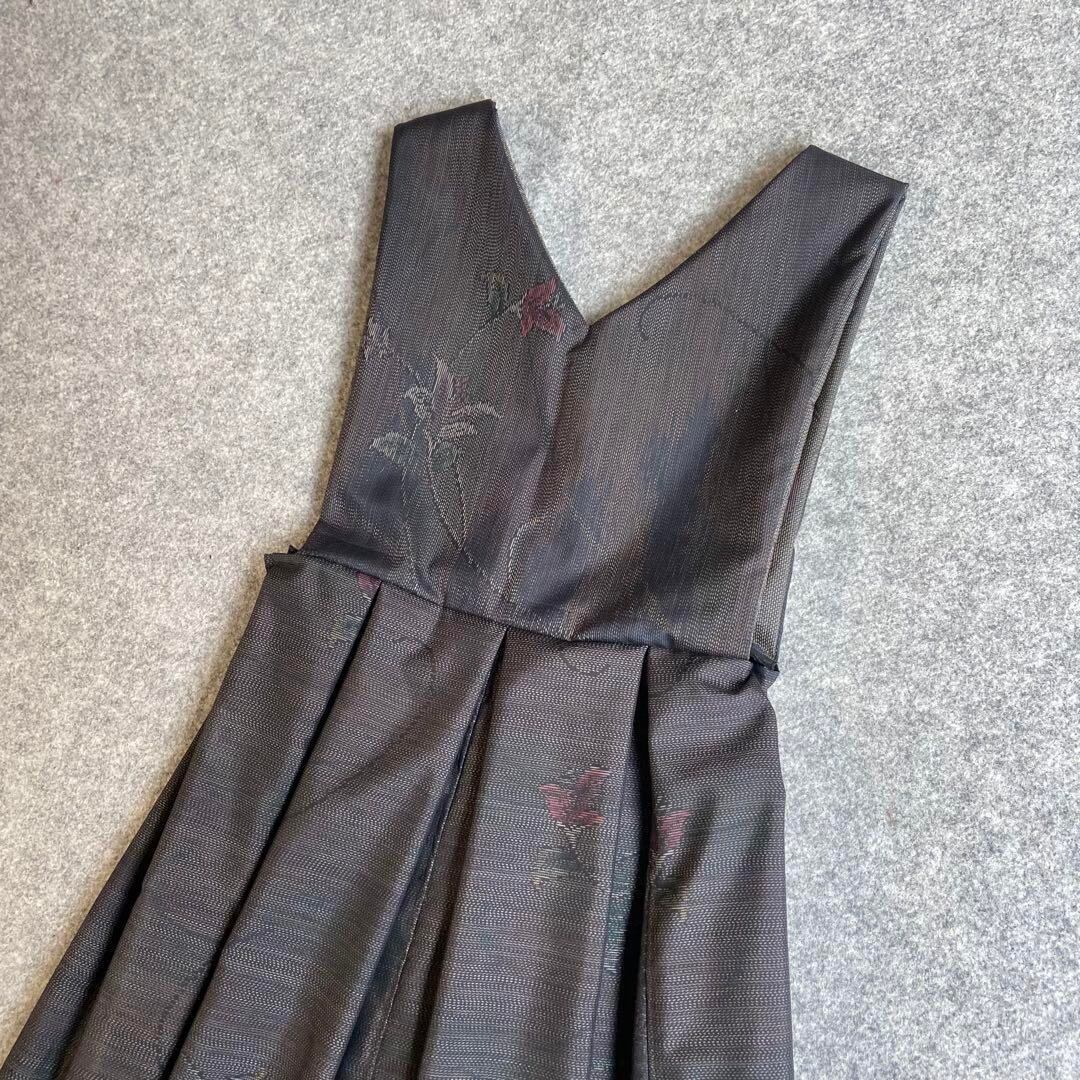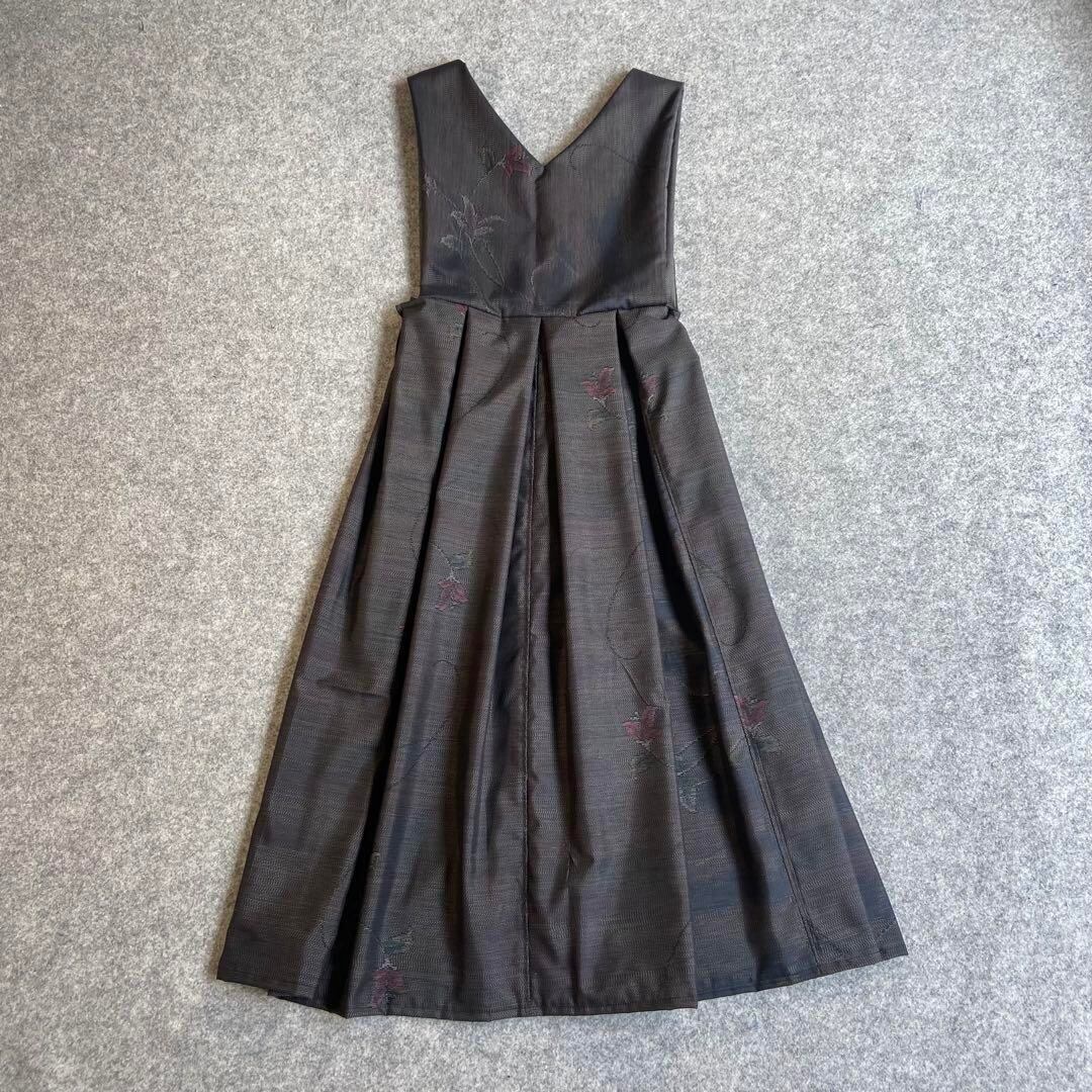 大島紬 ジャンパースカート 着物リメイク 花柄 草木 風雲 ロング Fサイズ