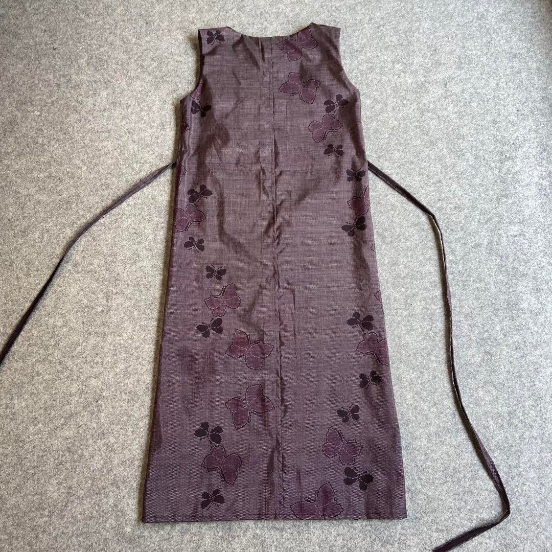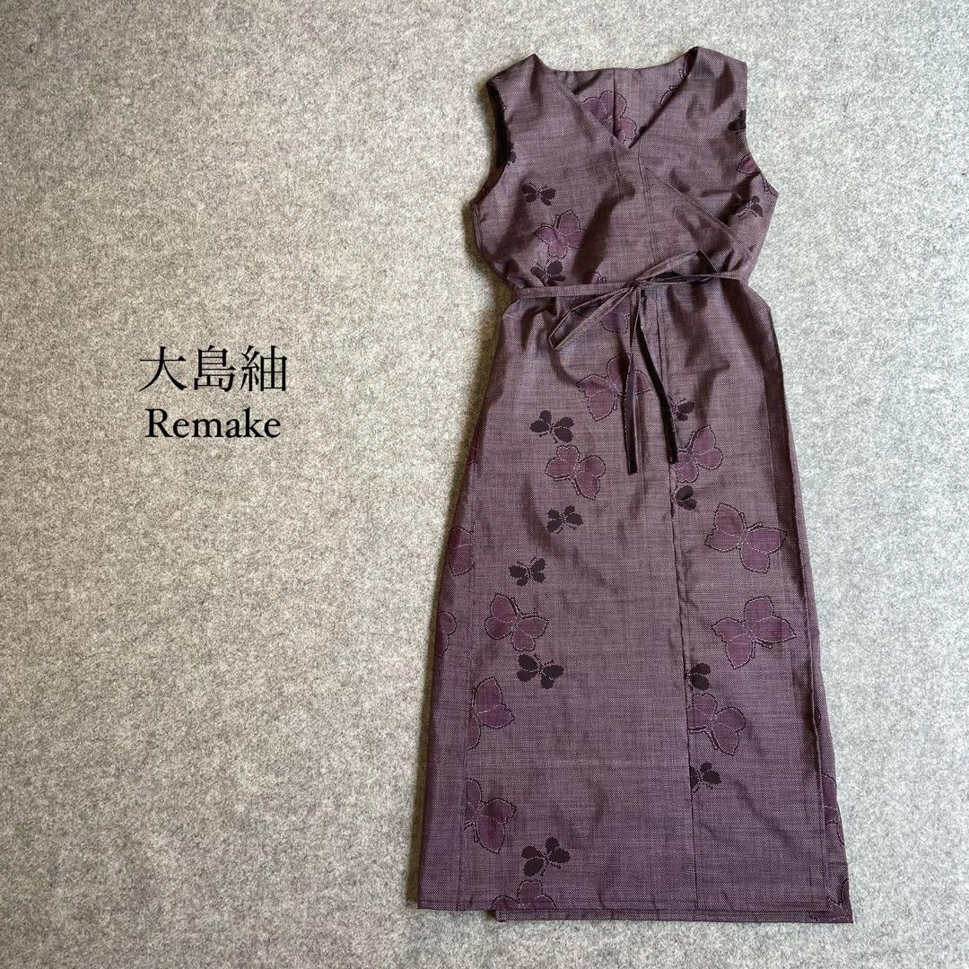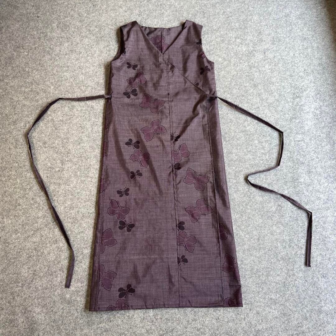 大島紬 カシュクールワンピース 着物リメイク 蝶々柄 ロング 羽織 Fサイズ