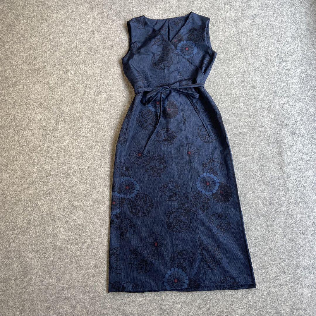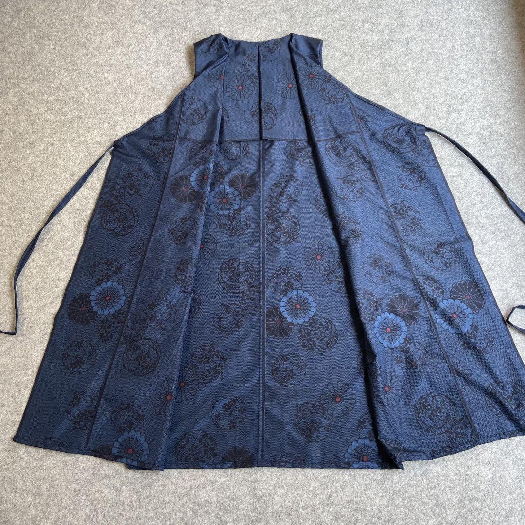 大島紬 カシュクールワンピース 着物リメイク 花柄 ロング 羽織 Fサイズ 青