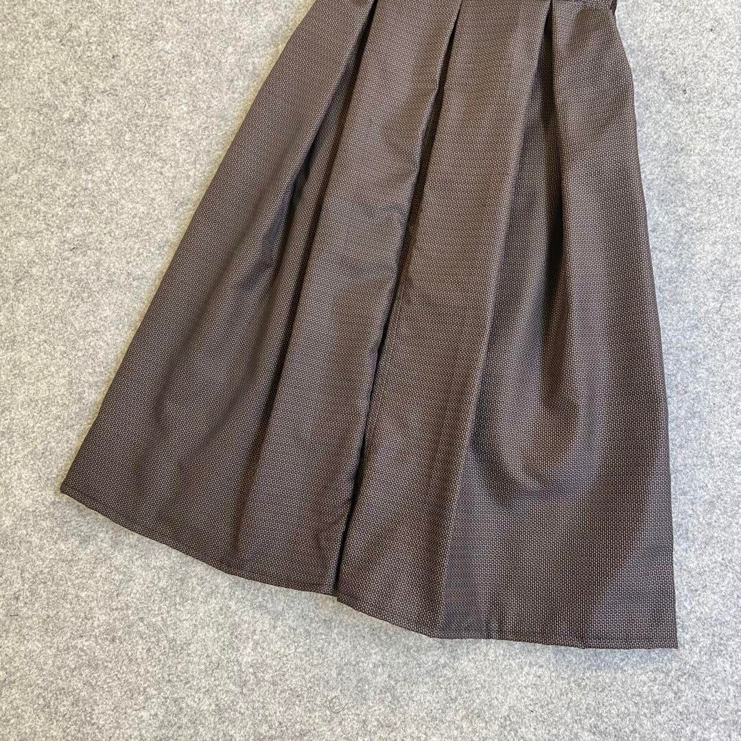 大島紬 ジャンパースカート ボックスプリーツ 亀甲×花柄 茶 Fサイズ