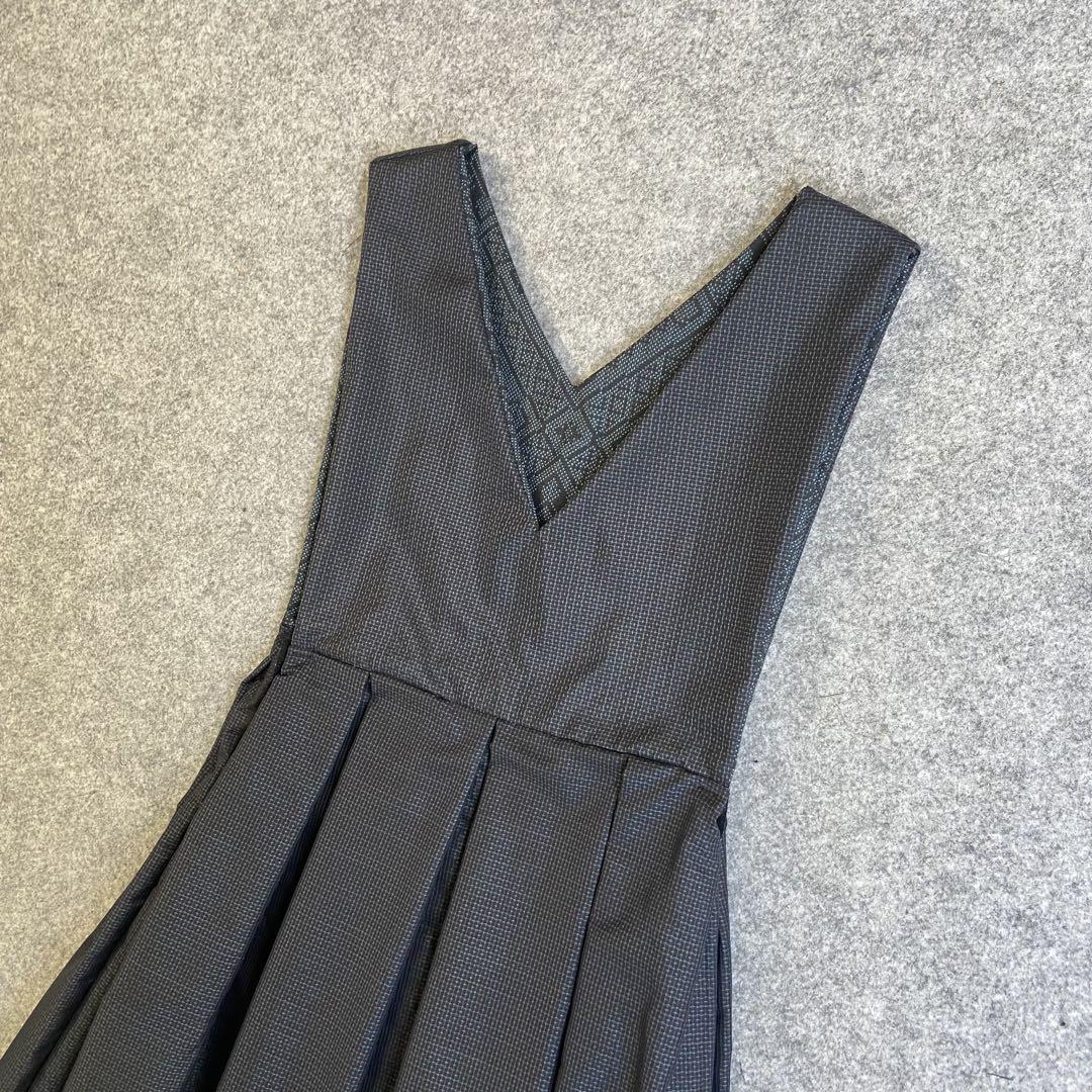 大島紬 ジャンパースカート ボックスプリーツ 亀甲×龍郷柄 ダークネイビー F