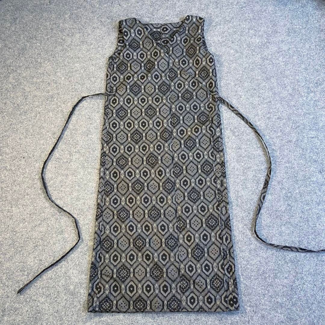 大島紬 カシュクールワンピース 着物リメイク 白×黒 ロング 羽織 F
