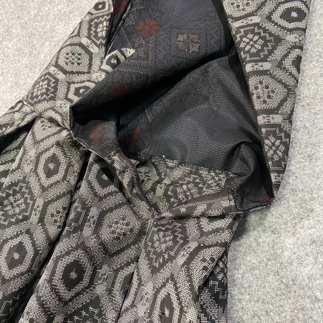 大島紬 ジャンパースカート ボックスプリーツ 膝丈 幾何学文様 白×黒 石畳 S
