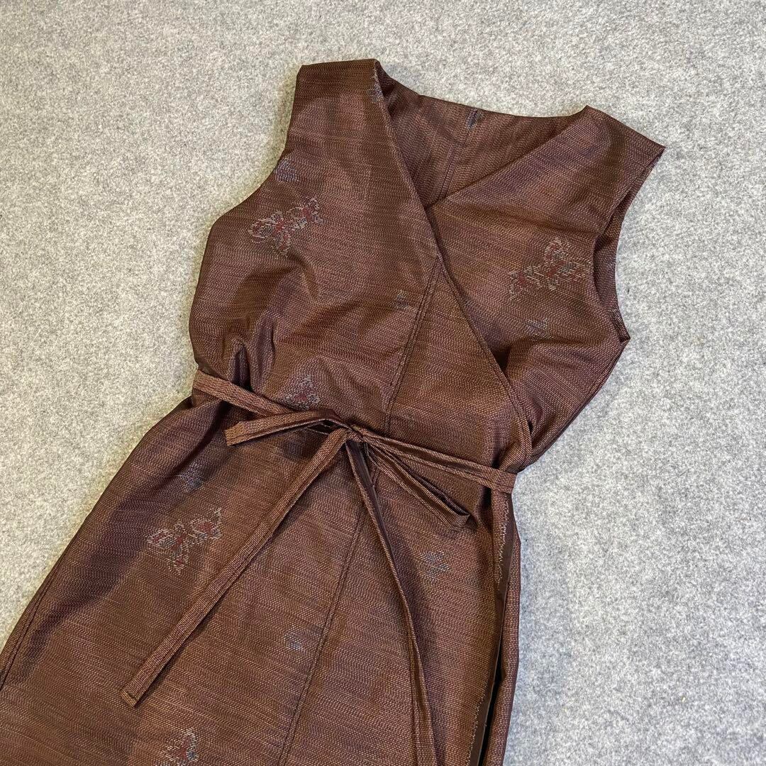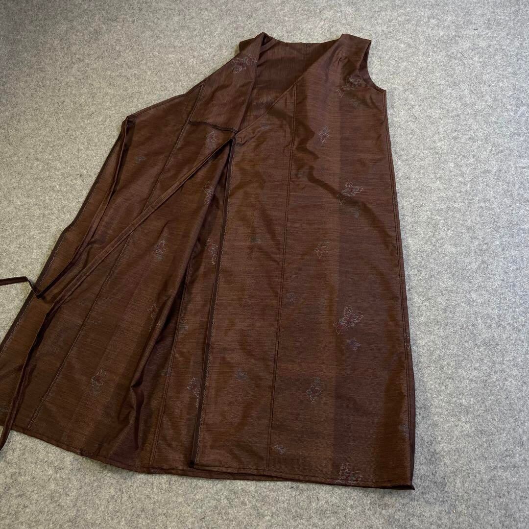 希少柄 大島紬 カシュクールワンピース 着物リメイク 蝶々文様 ロング 羽織 F