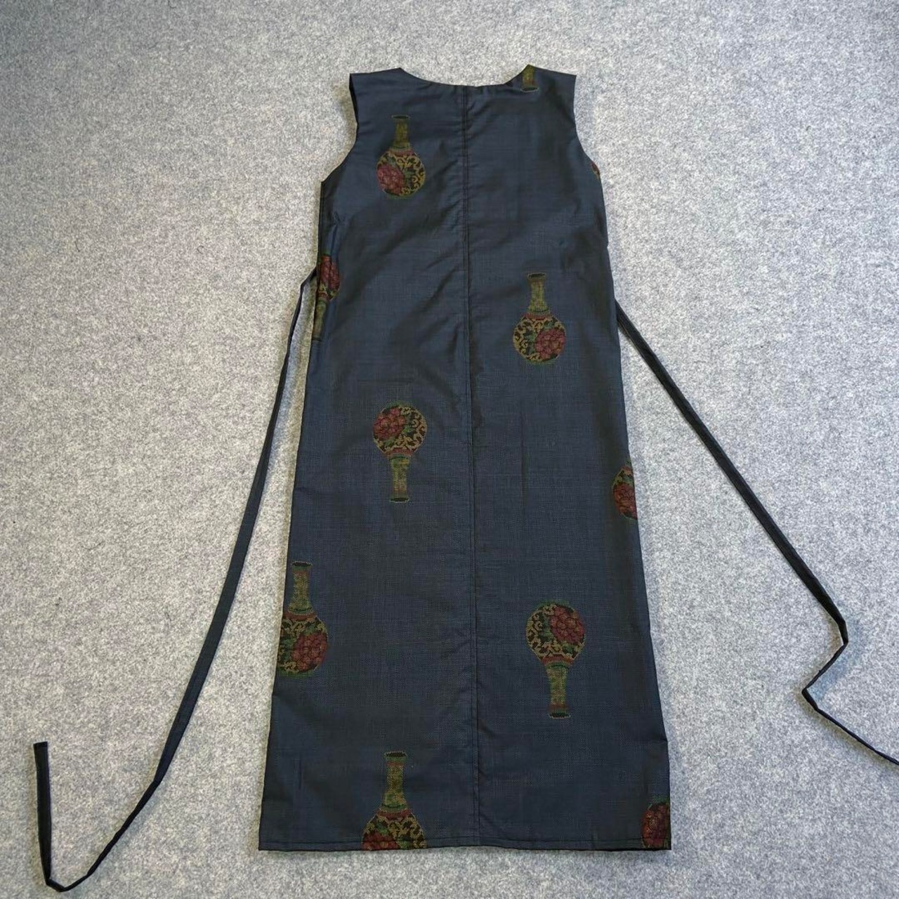 ハンドメイド 着物リメイク アップサイクル 和柄 和服 大正浪漫 ロマン 羽織り 薄手 総柄 ロング 裏地柄 入学式 卒業式 卒園式 入園式 お受験 パーティー お食事 お出かけ 旅行 着物コーデ 和服 ノースリーブ ノーカラー ノーボタン ボタンレス フォーマル カジュアル 泥染め 本番 白大島 壺 陶器 骨董 花瓶