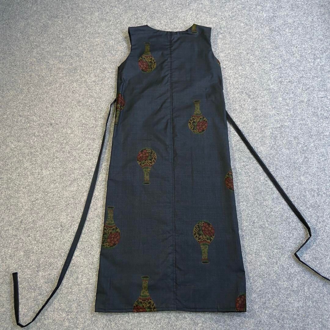 希少柄 大島紬 カシュクールワンピース 着物リメイク 花瓶文様 ロング 羽織 F