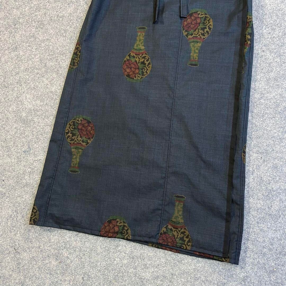 ネイビーの地色に花瓶柄が織り込まれた逸品。