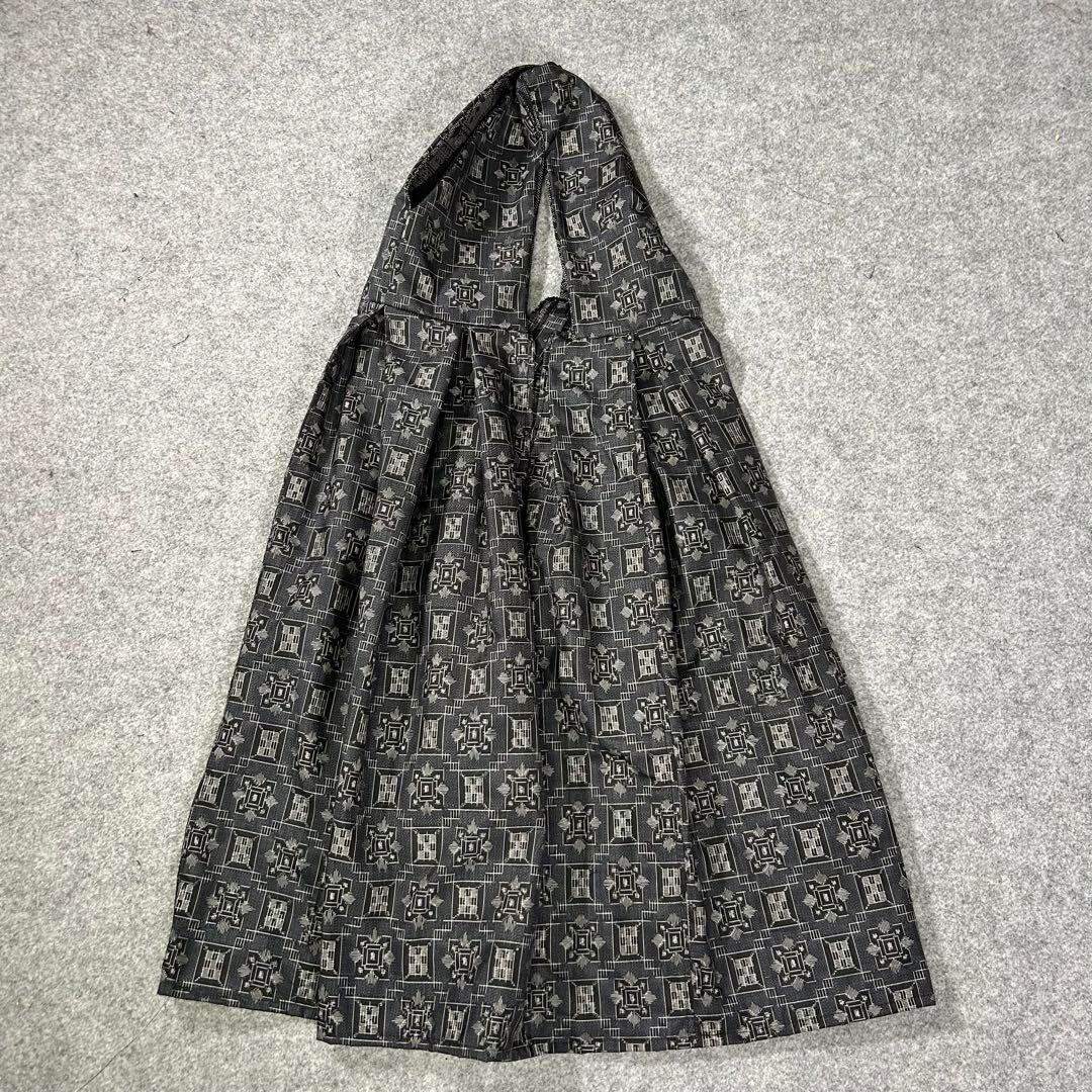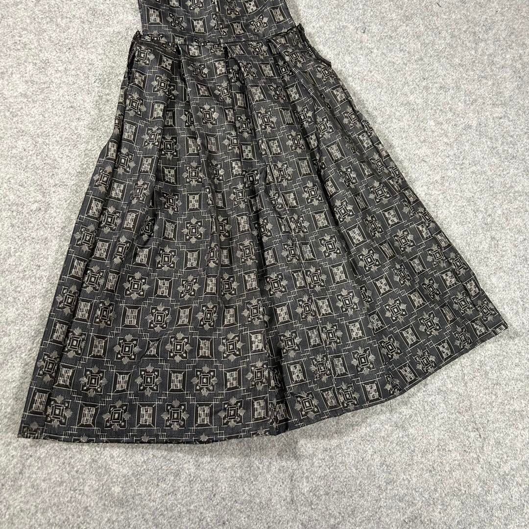 大島紬 ジャンパースカート ボックスプリーツ 総柄 幾何学文様 正絹 F グレー