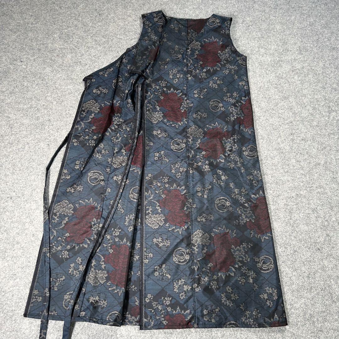 ハンドメイド 着物リメイク アップサイクル 和柄 和服 大正浪漫 ロマン 羽織り 薄手 総柄 ロング 裏地柄 入学式 卒業式 卒園式 入園式 お受験 パーティー お食事 お出かけ 旅行 着物コーデ 和服 ノースリーブ ノーカラー ノーボタン ボタンレス フォーマル カジュアル 泥染め 本番 白大島