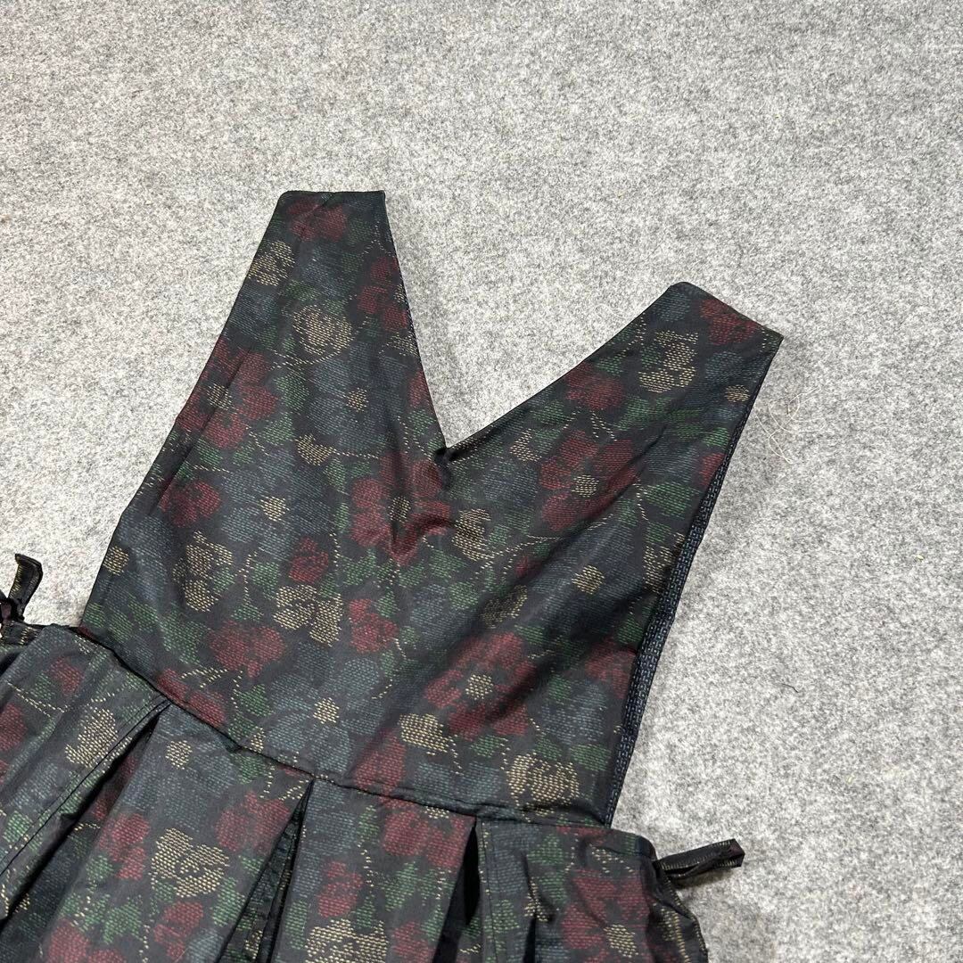 大島紬 ジャンパースカート 花柄 枝花尽くし ボックスプリーツ サイドリボン