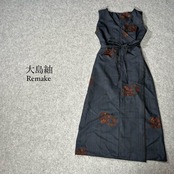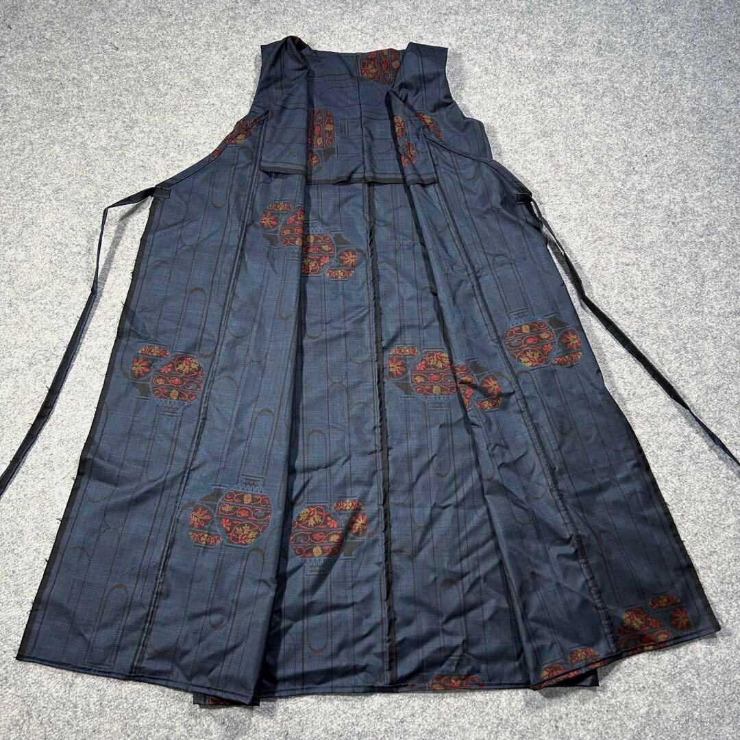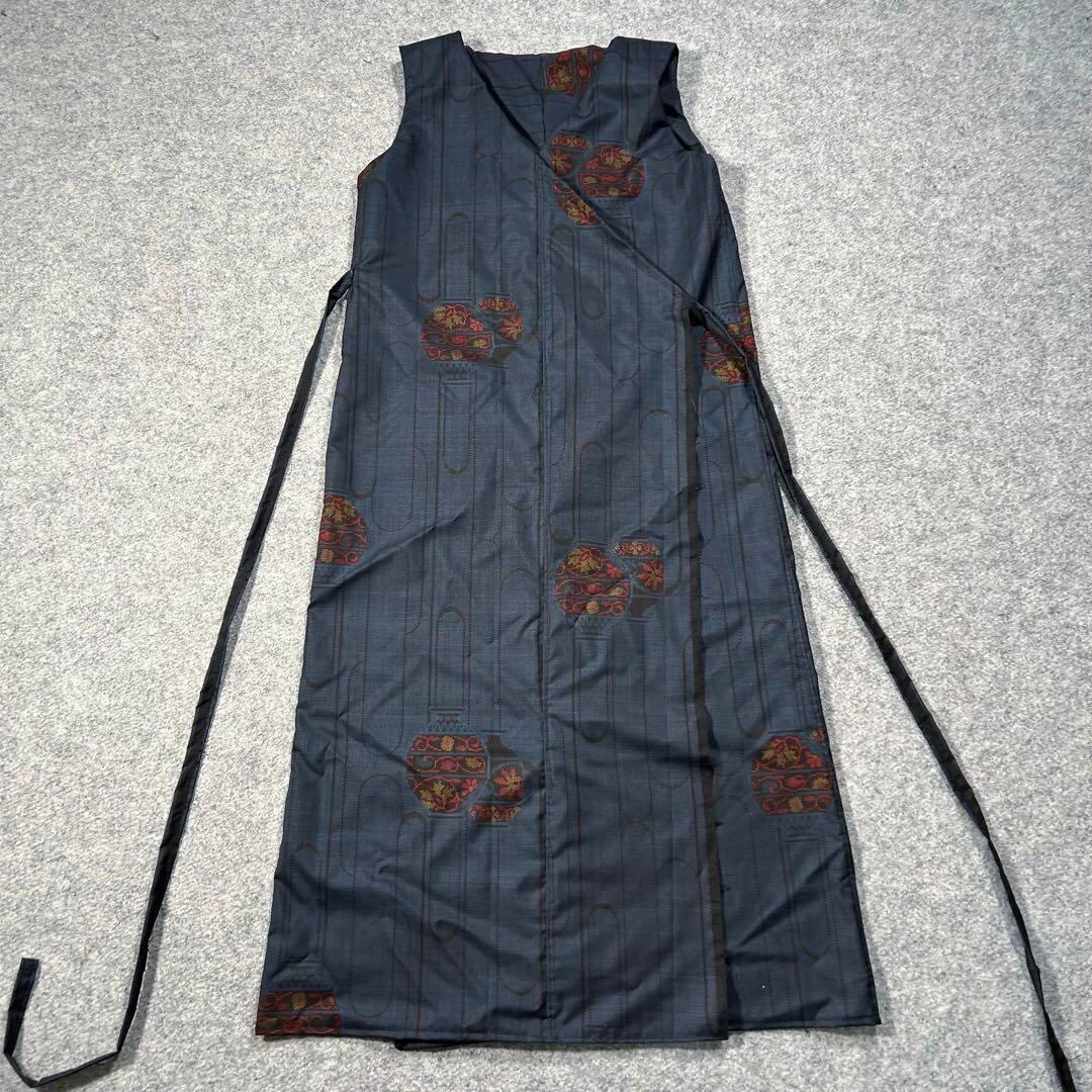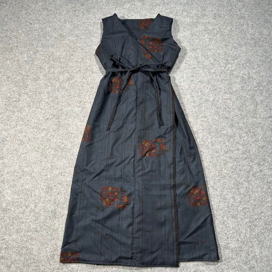 超希少柄 大島紬 カシュクールワンピース 着物リメイク 壺柄 花瓶 藍 Fサイズ