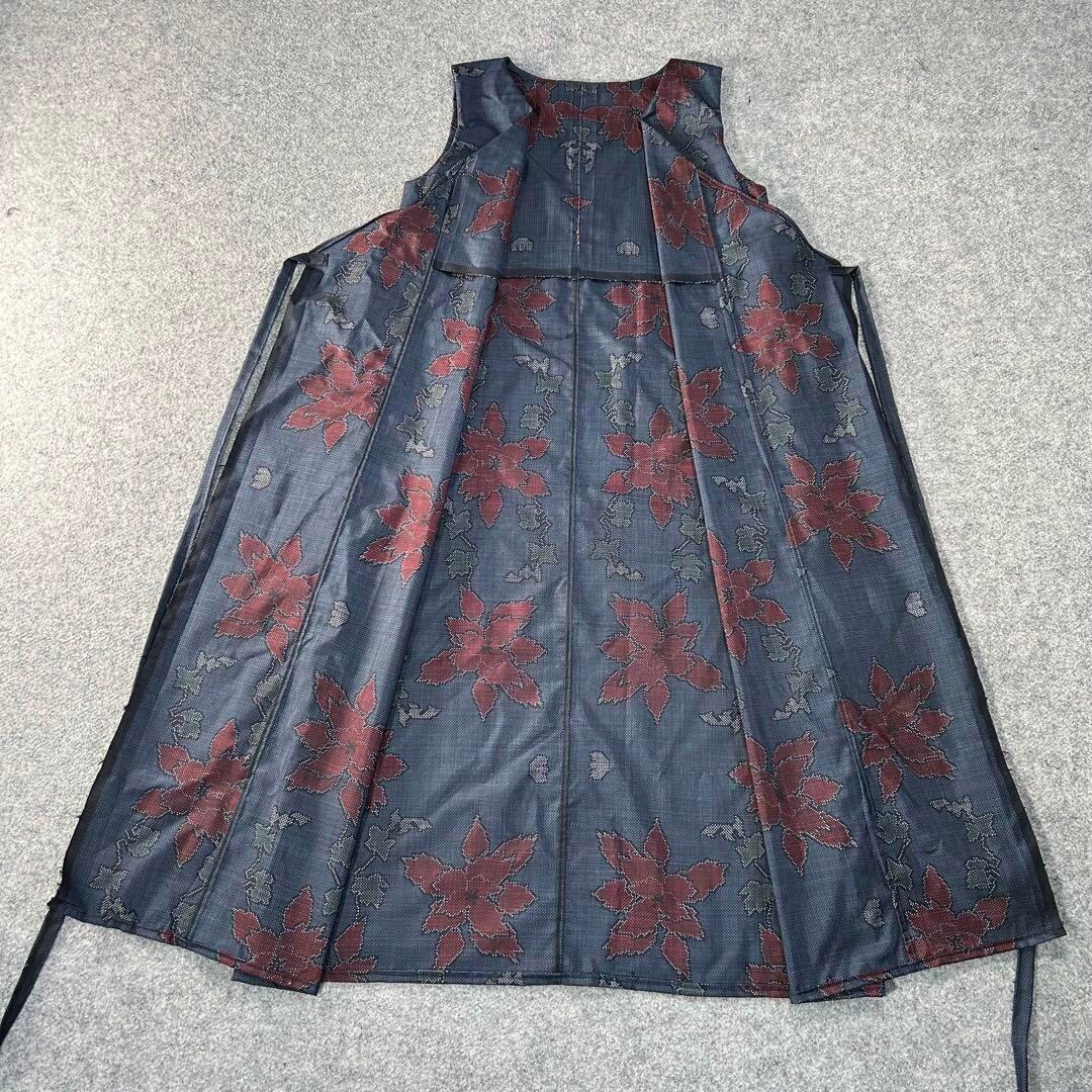 ハンドメイド 着物リメイク アップサイクル 和柄 和服 大正浪漫 ロマン 羽織り 薄手 総柄 ロング 裏地柄 入学式 卒業式 卒園式 入園式 お受験 パーティー お食事 お出かけ 旅行 着物コーデ 和服 ノースリーブ ノーカラー ノーボタン ボタンレス フォーマル カジュアル 泥染め 本番 白大島