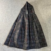 大島紬 ジャンパースカート 総柄 グレー ボックスプリーツ 吉祥花紋 泥染め