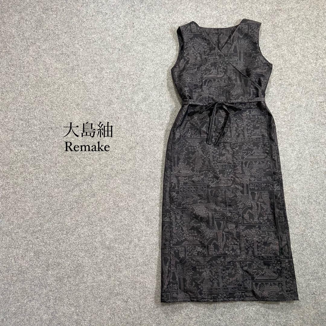 希少柄 大島紬 カシュクールワンピース 着物リメイク エジプト壁画文様 泥染