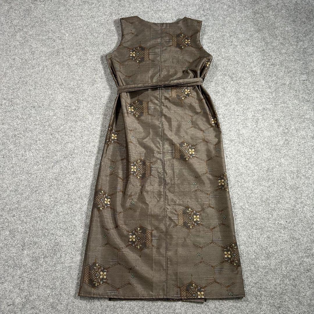本場大島紬 カシュクールワンピース 着物リメイク 亀甲花文様 7マルキ ブラウン