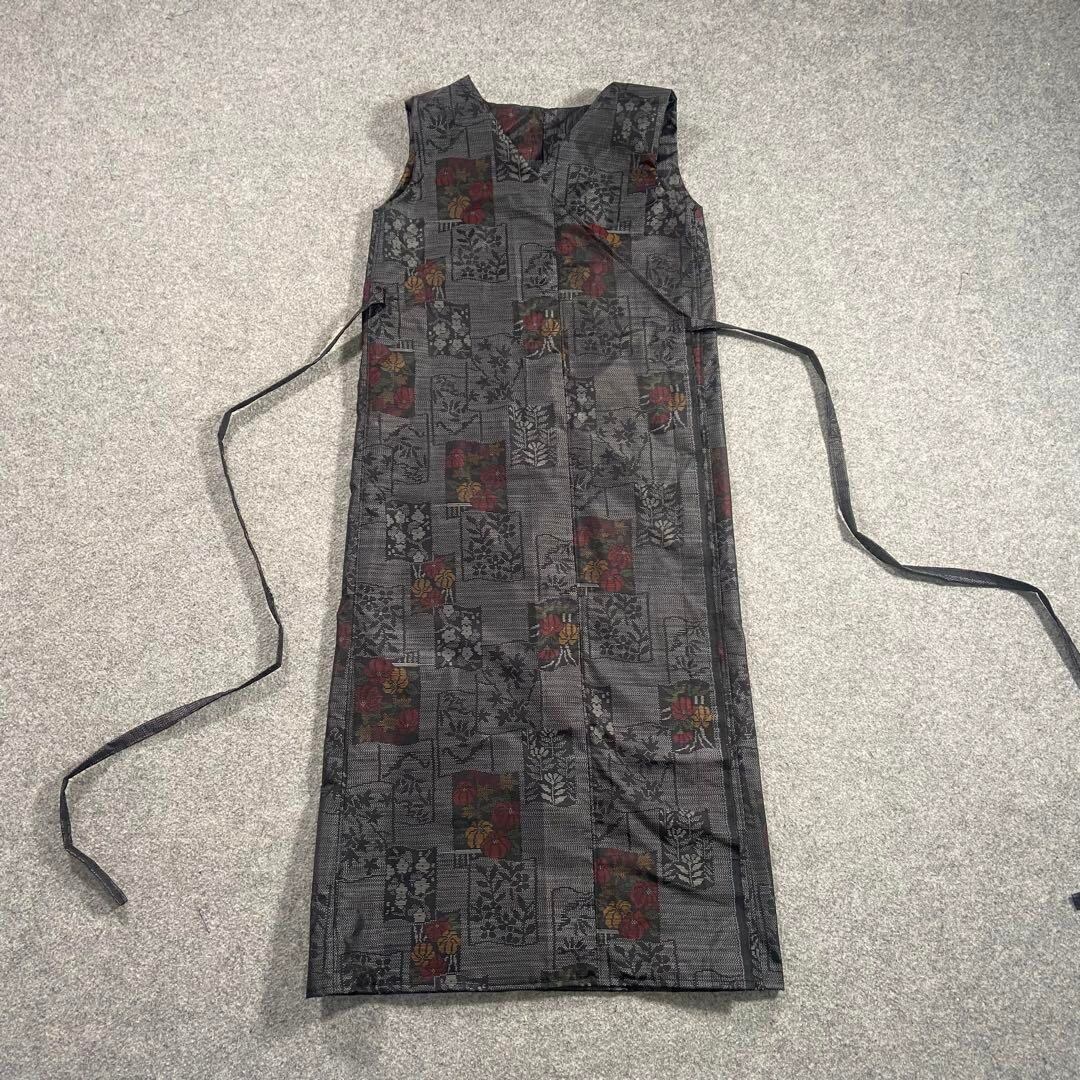 本場大島紬 カシュクールワンピース 着物リメイク 色紙吉祥文様 リボン紐 F