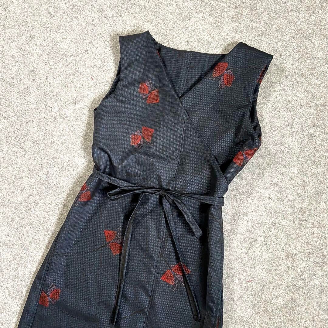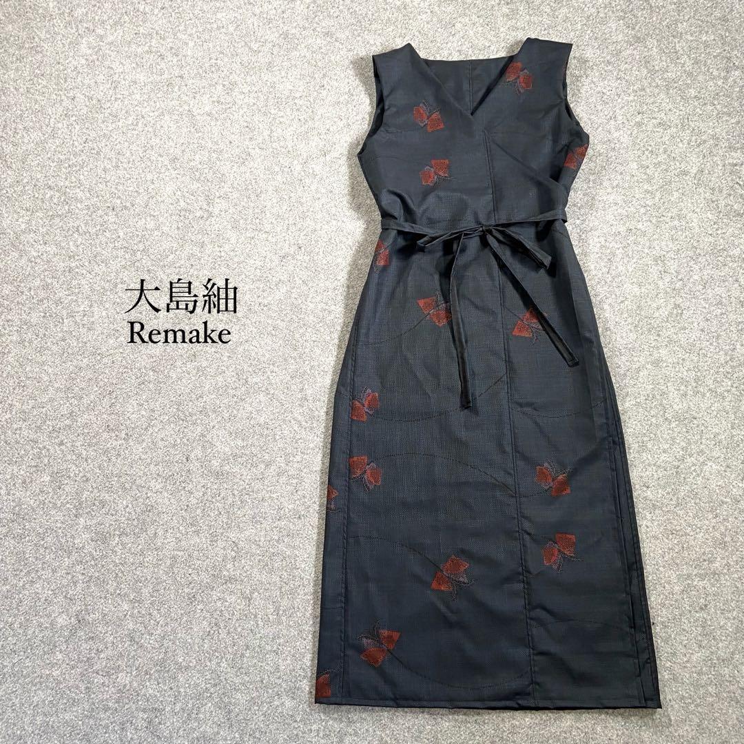 ハンドメイド 着物リメイク アップサイクル 和柄 和服 大正浪漫 ロマン 羽織り 入学式 卒業式 卒園式 入園式 お受験 パーティー コーデ ノースリーブ ノーカラー ノーボタン ボタンレス フォーマル カジュアル 泥染め 本場 白大島