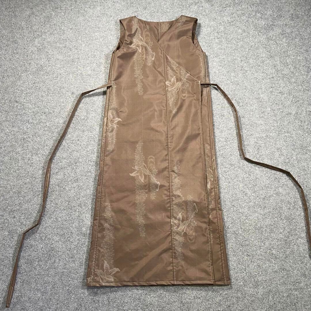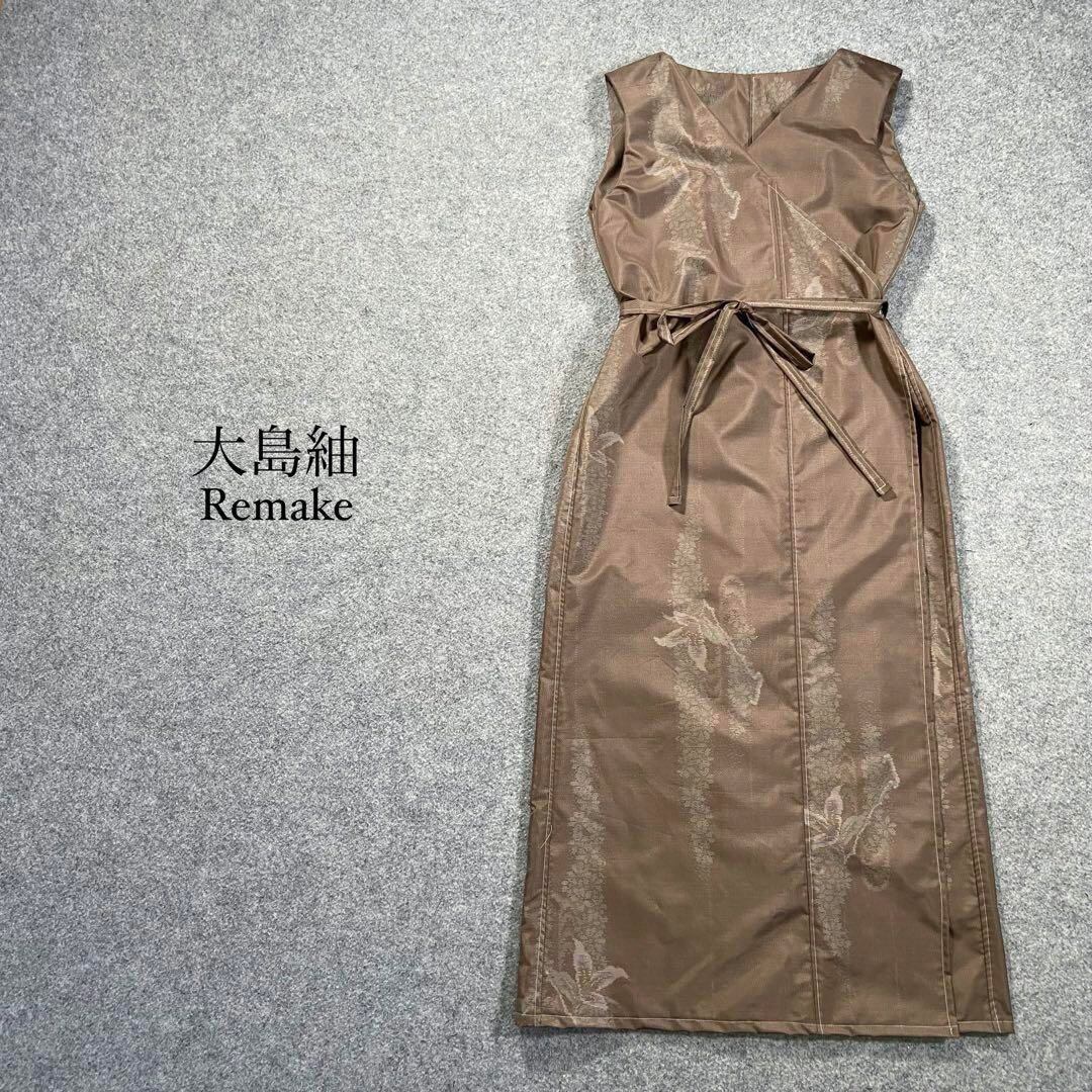 本場大島紬 カシュクールワンピース 霞花文様 リボンベルト ロング ブラウン