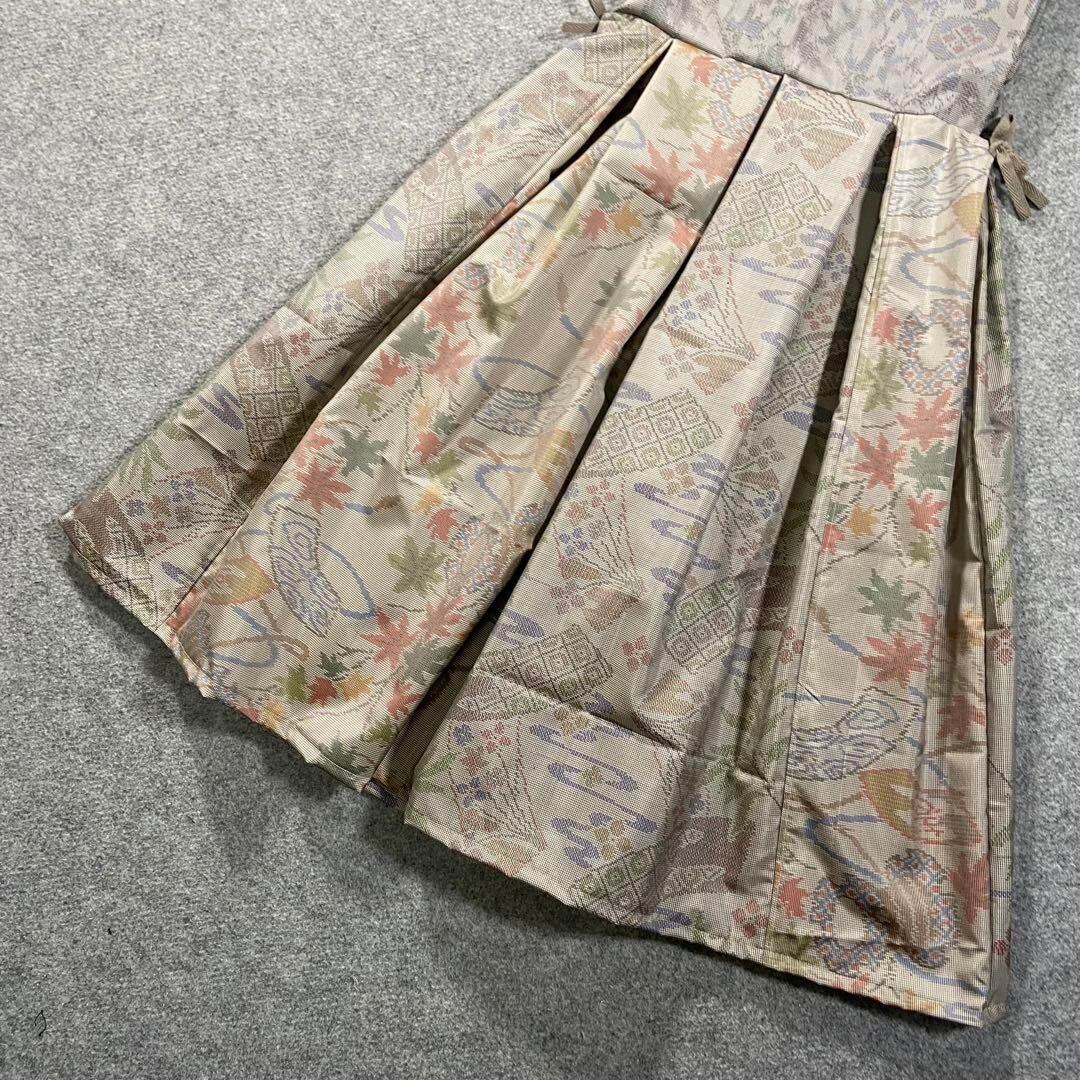 大島紬 ジャンパースカート 着物リメイク 風景文様 ボックスプリーツ ホワイト