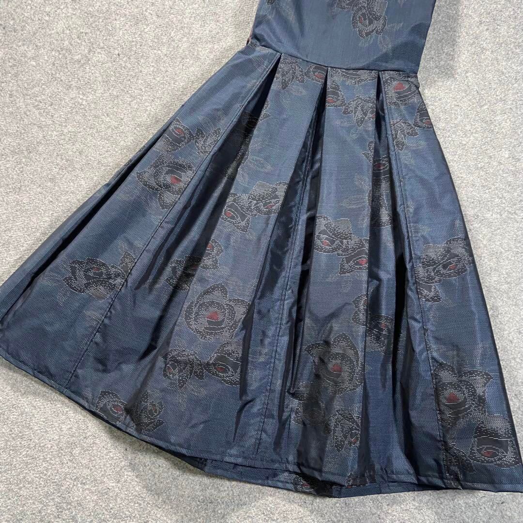 大島紬 ジャンパースカート ボックスプリーツ ビッグフラワー 花柄 光沢 ロング