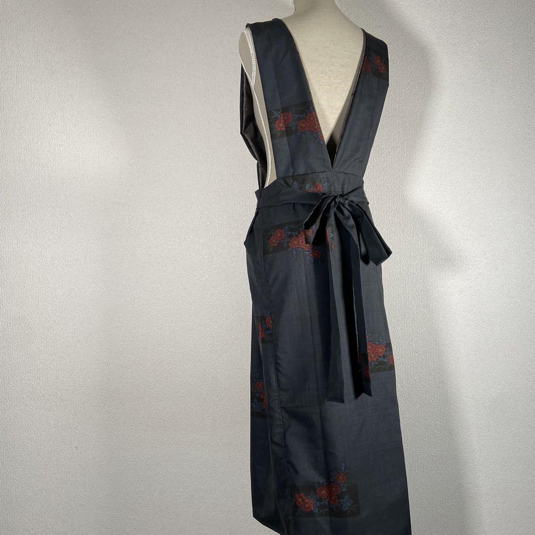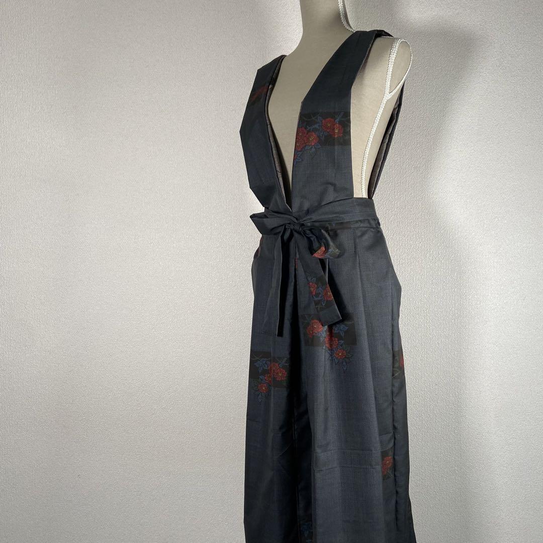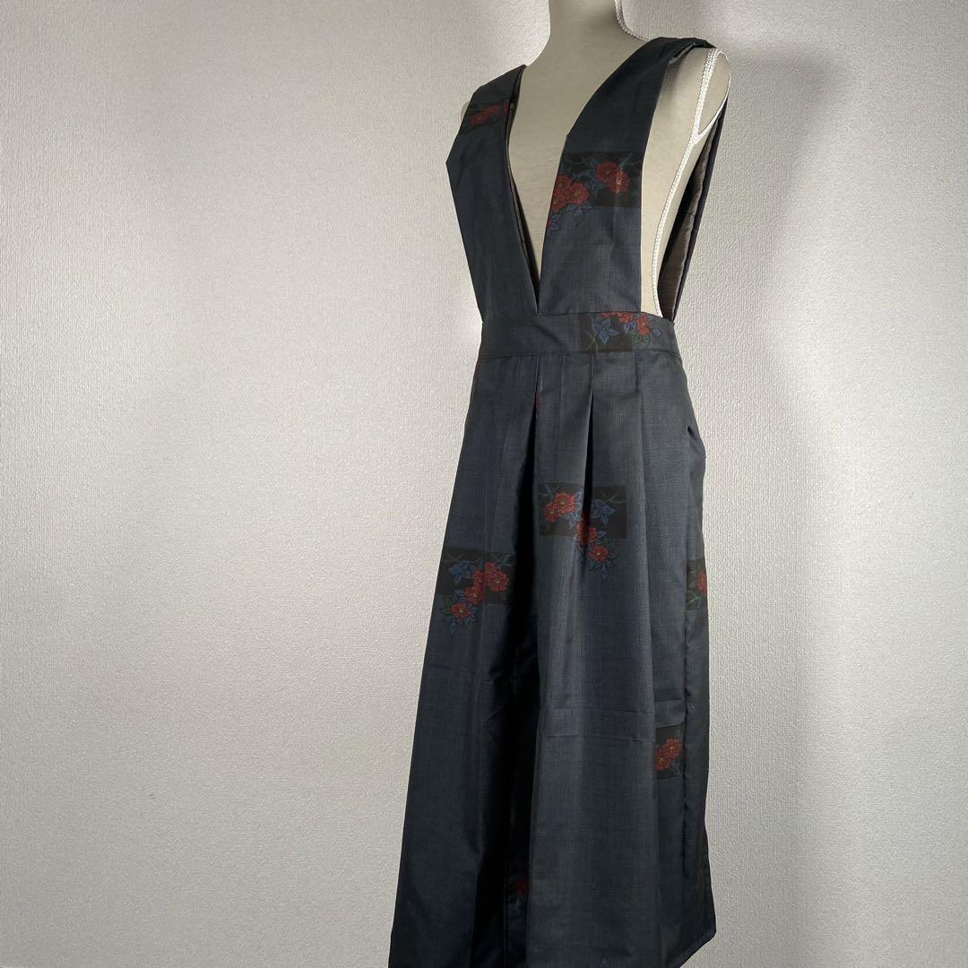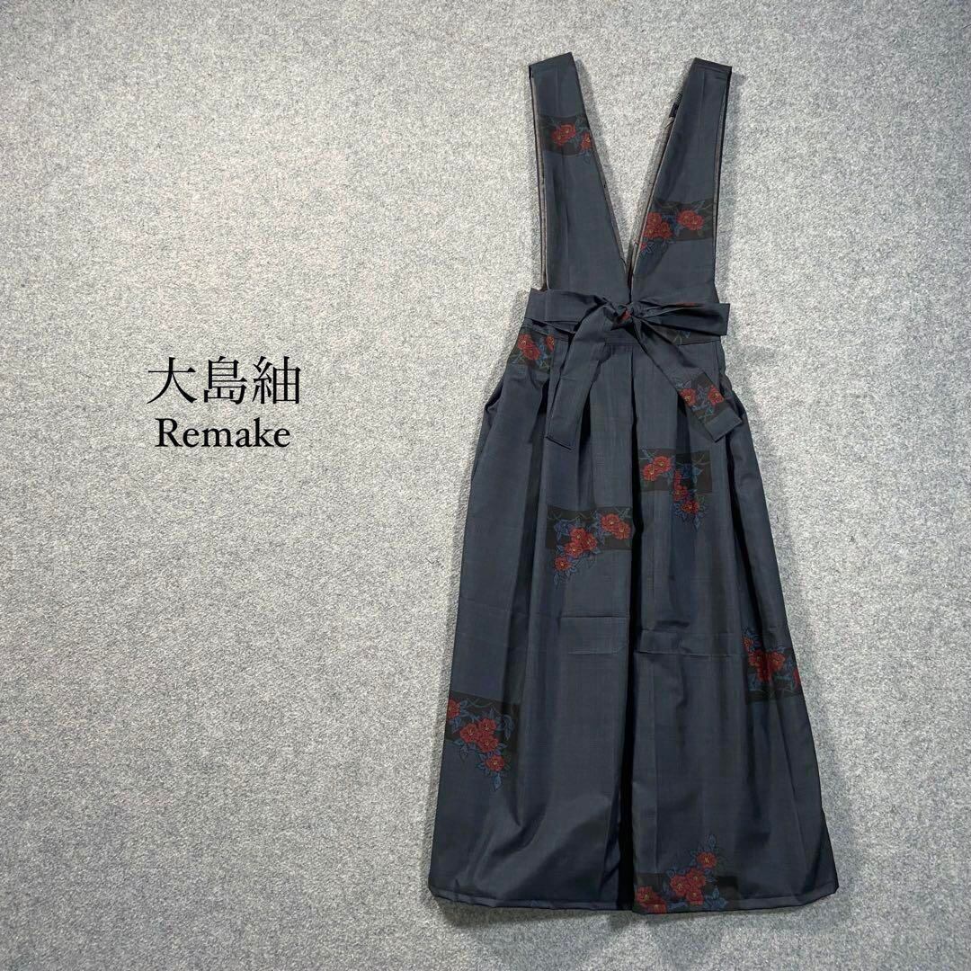 大島紬 袴ジャンパースカート リボンベルト 花柄 7マルキ 変形ワンピース