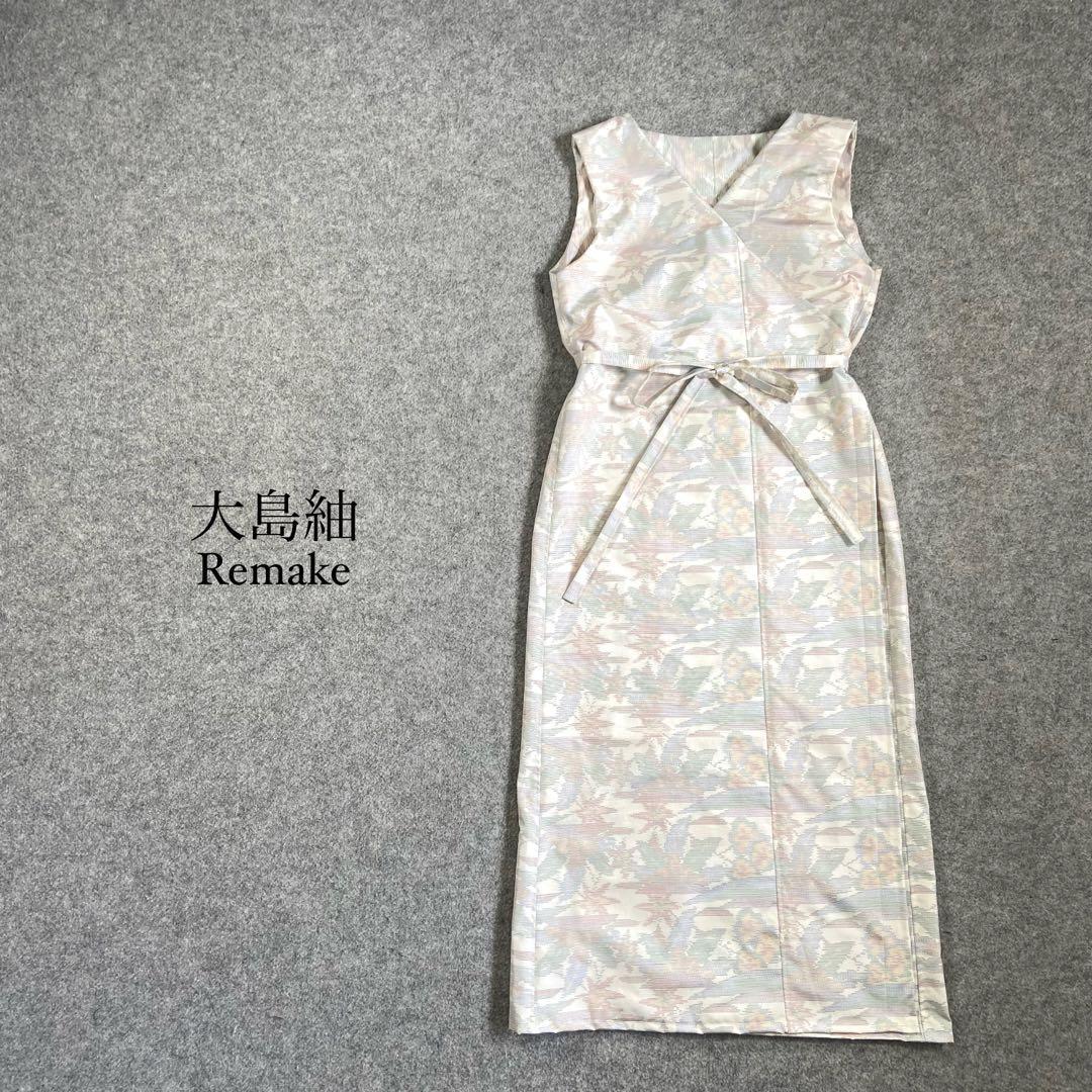 白大島紬 カシュクールワンピース 舞葉文様 左右両用 ロング F