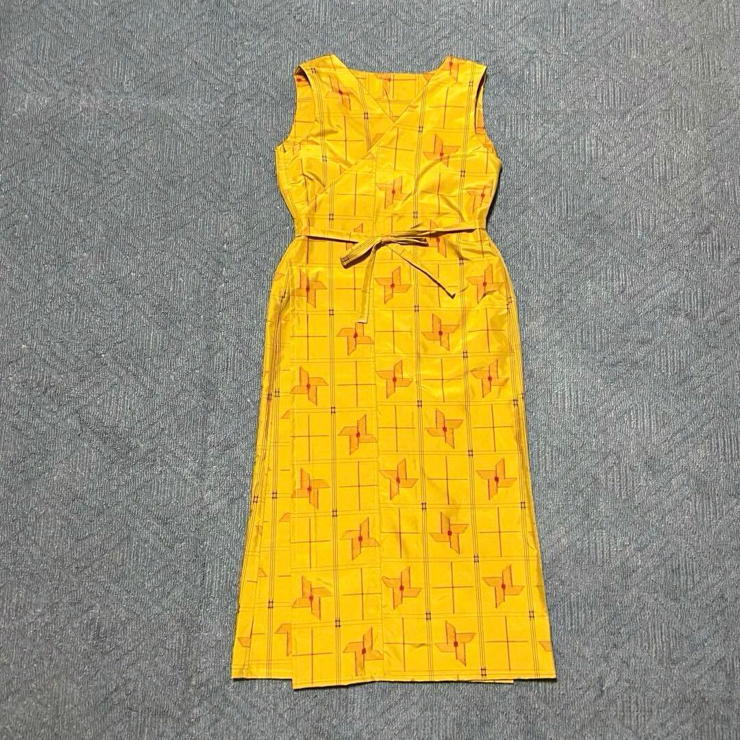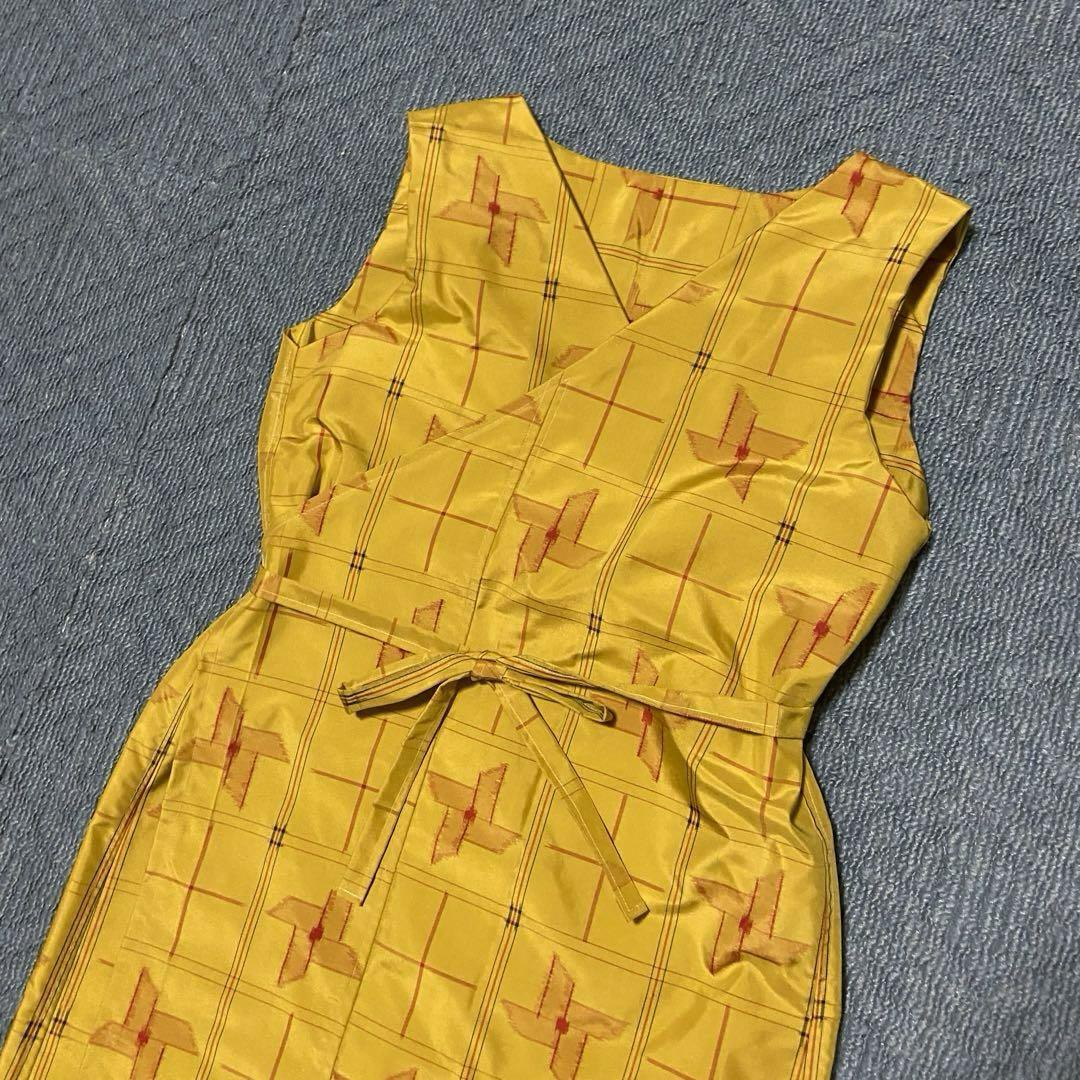 超希少カラー‼︎ 本場縞大島紬 カシュクールワンピース 風車柄 格子 ロング