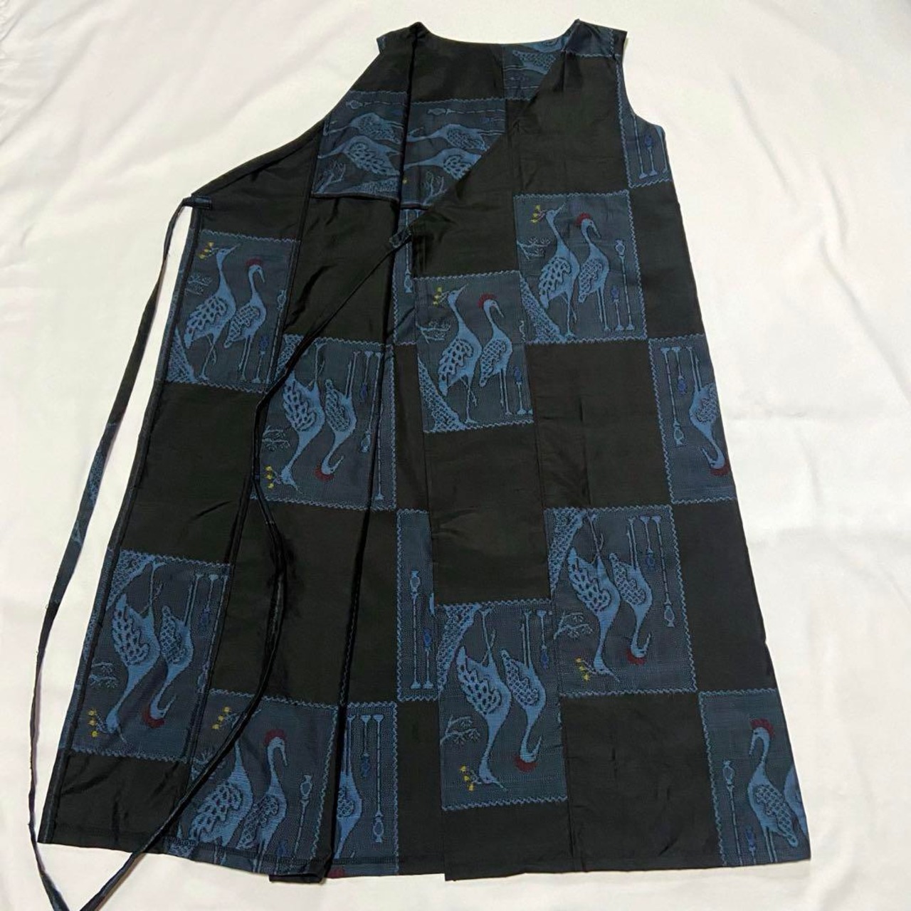 超希少 色紙鳥文様 大島紬 カシュクールワンピース 9マルキ 左右両用 ロング