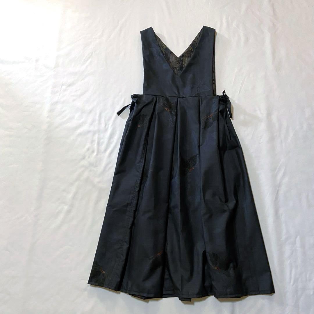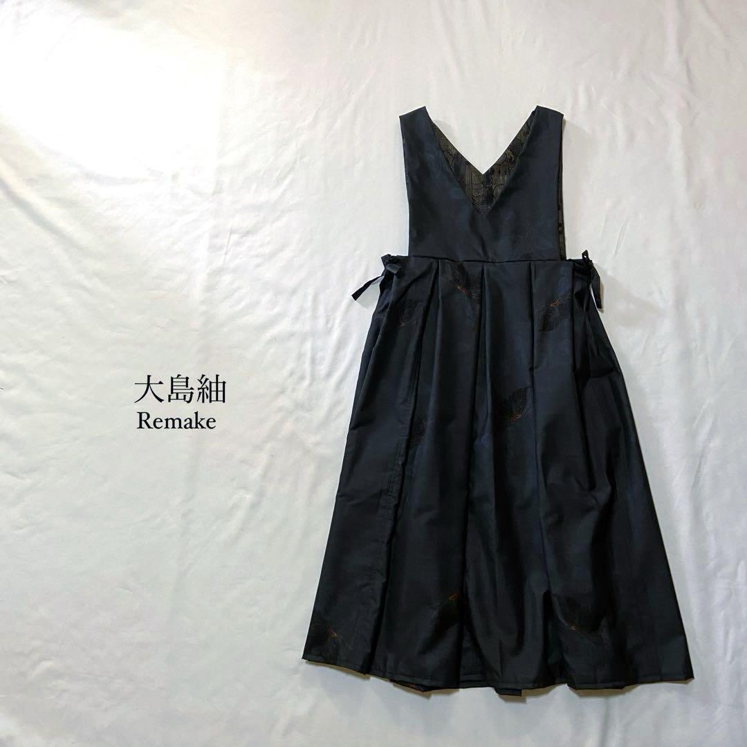 大島紬 ジャンパースカート ボックスプリーツ 舞蝶文様 9マルキ 泥染め