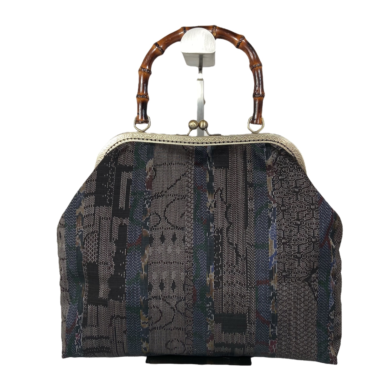 大島紬 がま口バッグ 有名柄オールスター バンブーハンドル トートバッグ